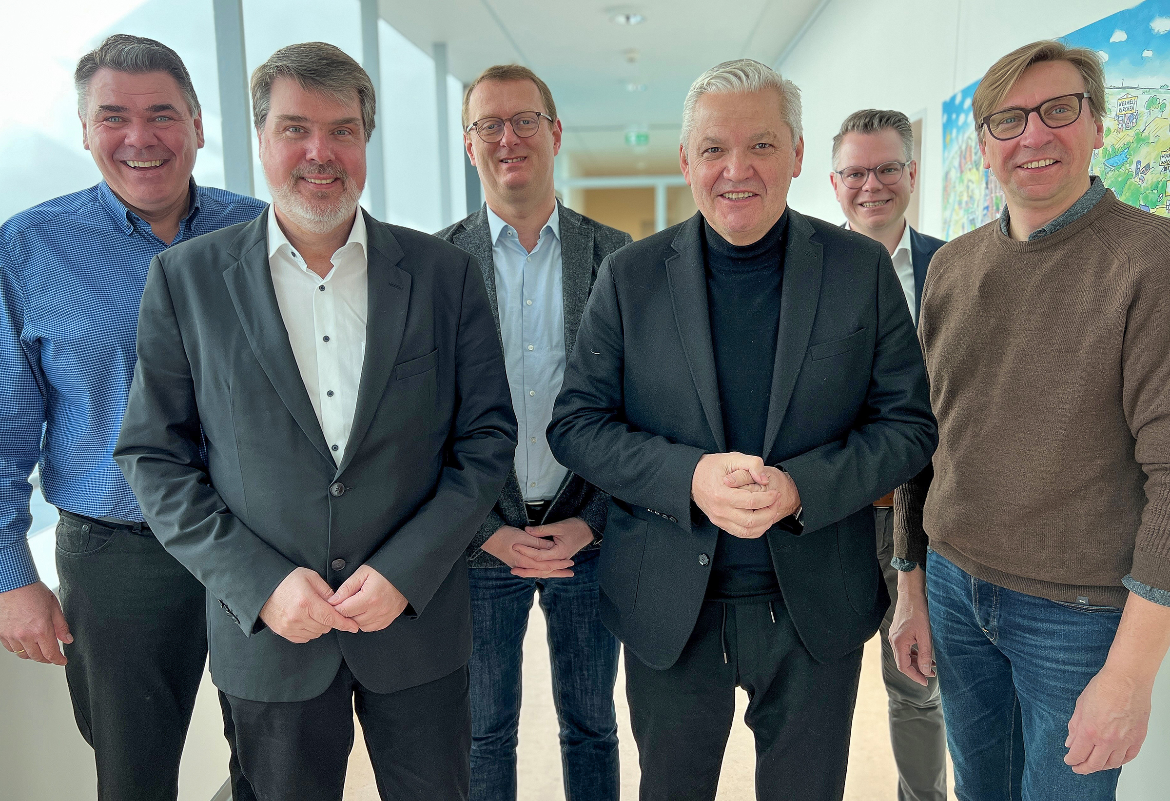 BU1 v.l.: Landrat Mario Löhr, Michael Thews, Oliver Kaczmarek, Hubert Hüppe, Kreisdirektor Mike-Sebastian Janke und Michael Sacher.