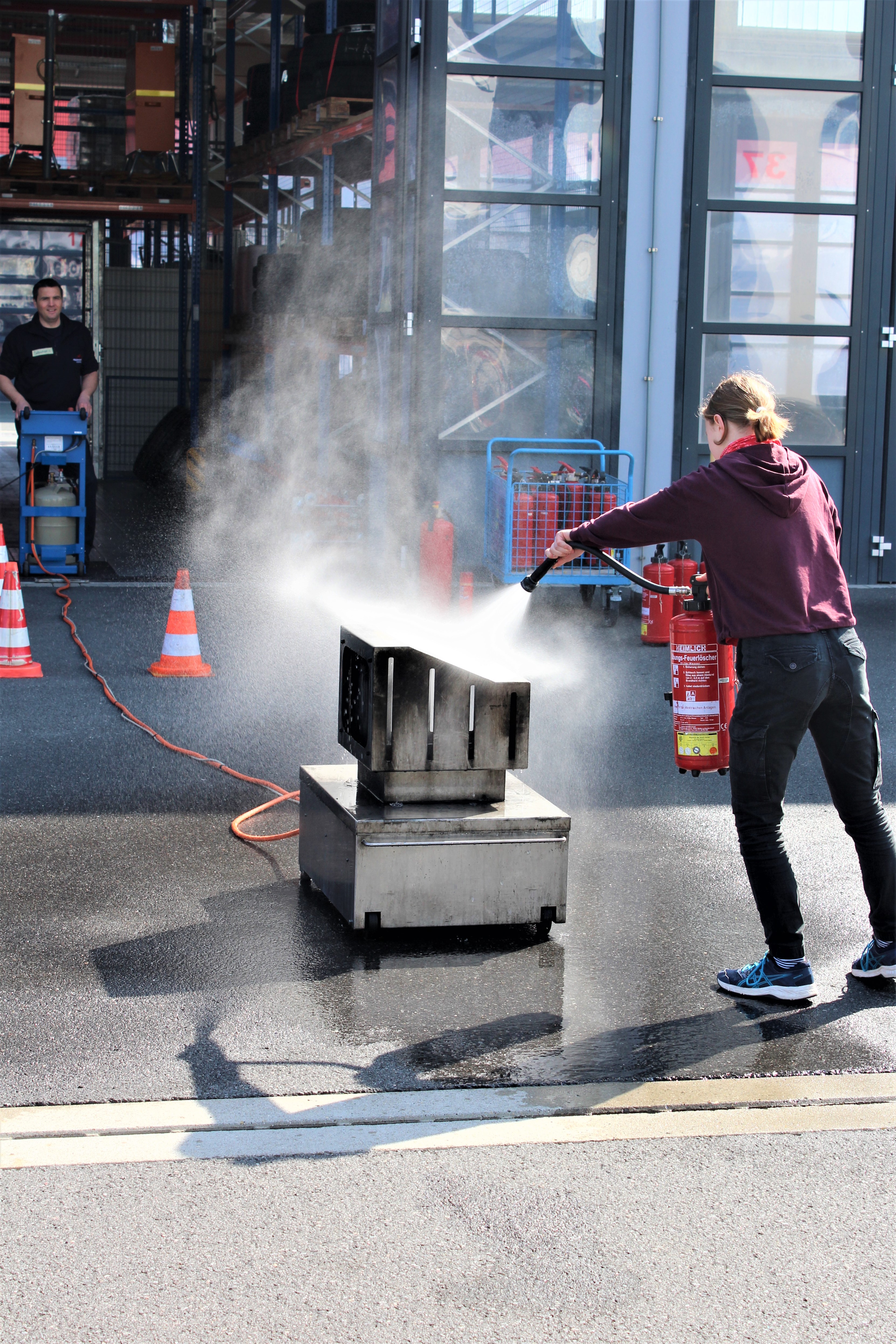 Beim Girls Day konnten die jungen Besucherinnen ausprobieren, wie man ein kleines Feuer löscht.