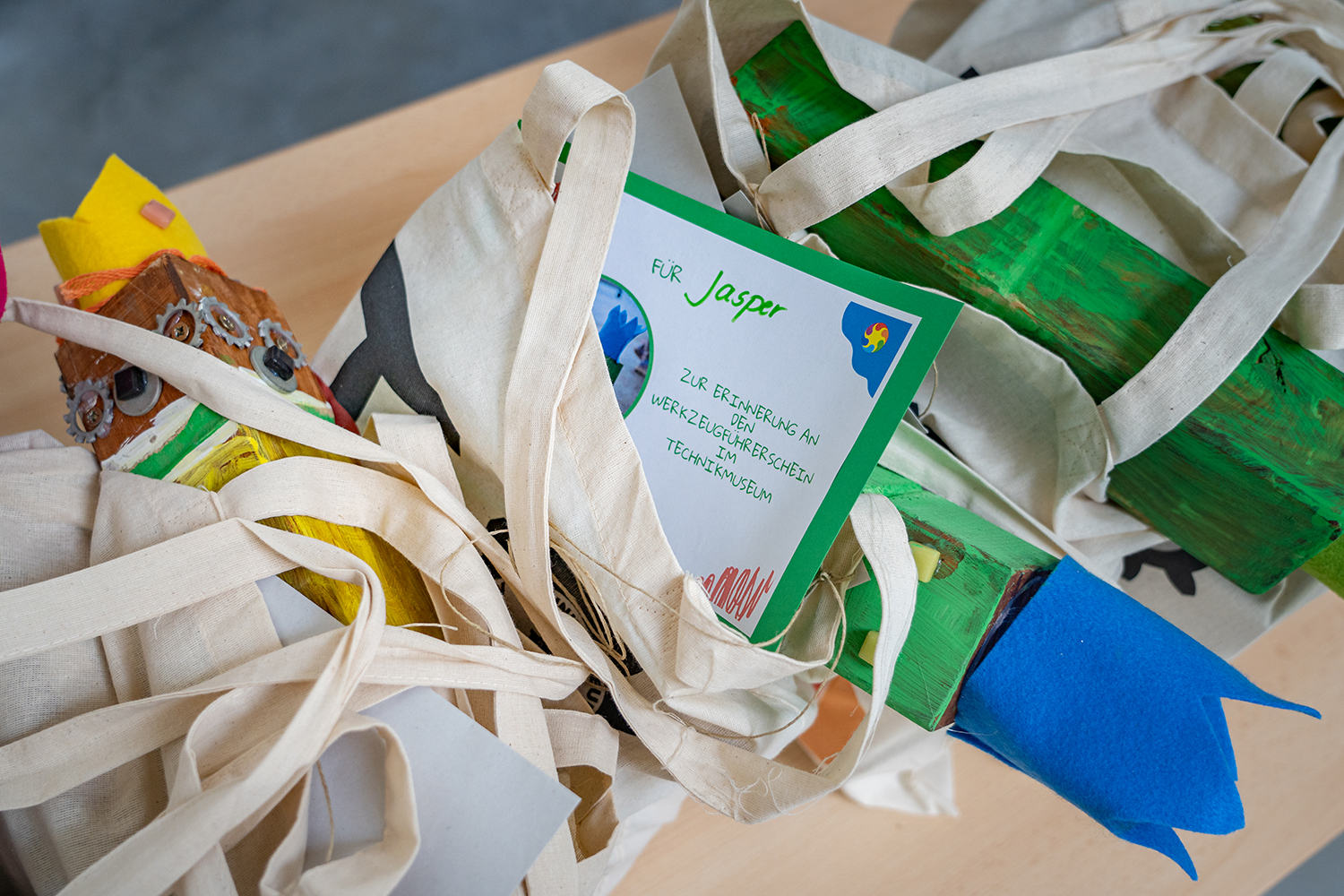 Neben den selbstgebauten Wurfholzspielen erhielten die Kinder weitere bunte Andenken.