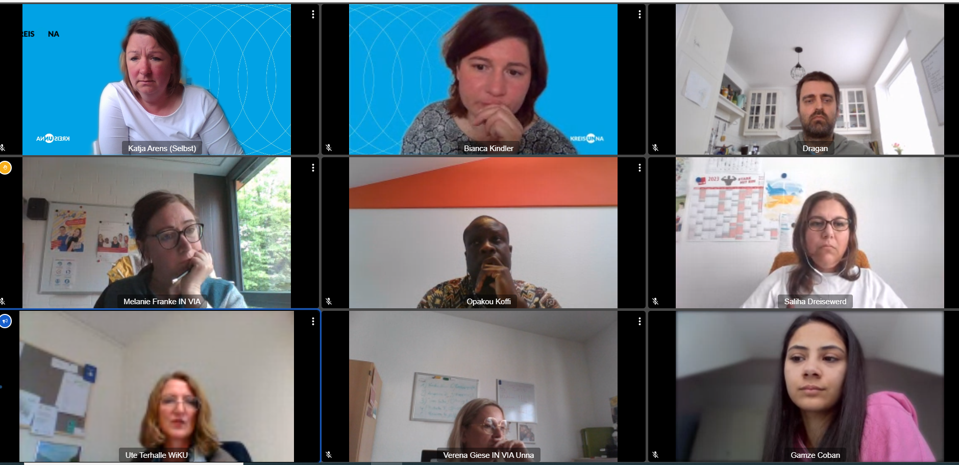 Das Südkreis-Team des Kommunalen Integratiosmanagement (KIM) hat sich am Mittwoch, 16. Mai, mit Ansprechparterinnen von INVia sowie der Werkstatt Kreis Unna virtuell getroffen.