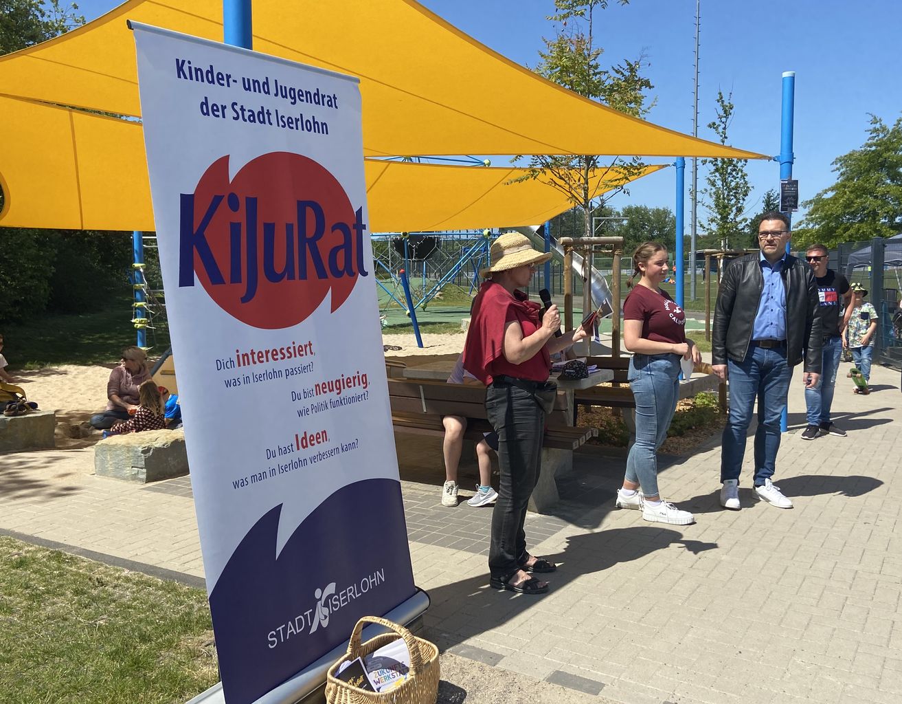 Bürgermeister Michael Joithe und Jugendrats-Vertreterin Frieda Rohman übergaben den anwesenden Kalthoferinnen und Kalthofern bei strahlendem Sonnenschein und unter blauem Himmel offiziell den neuen Mehrgenerationen-Platz an der Refflingser Straße.