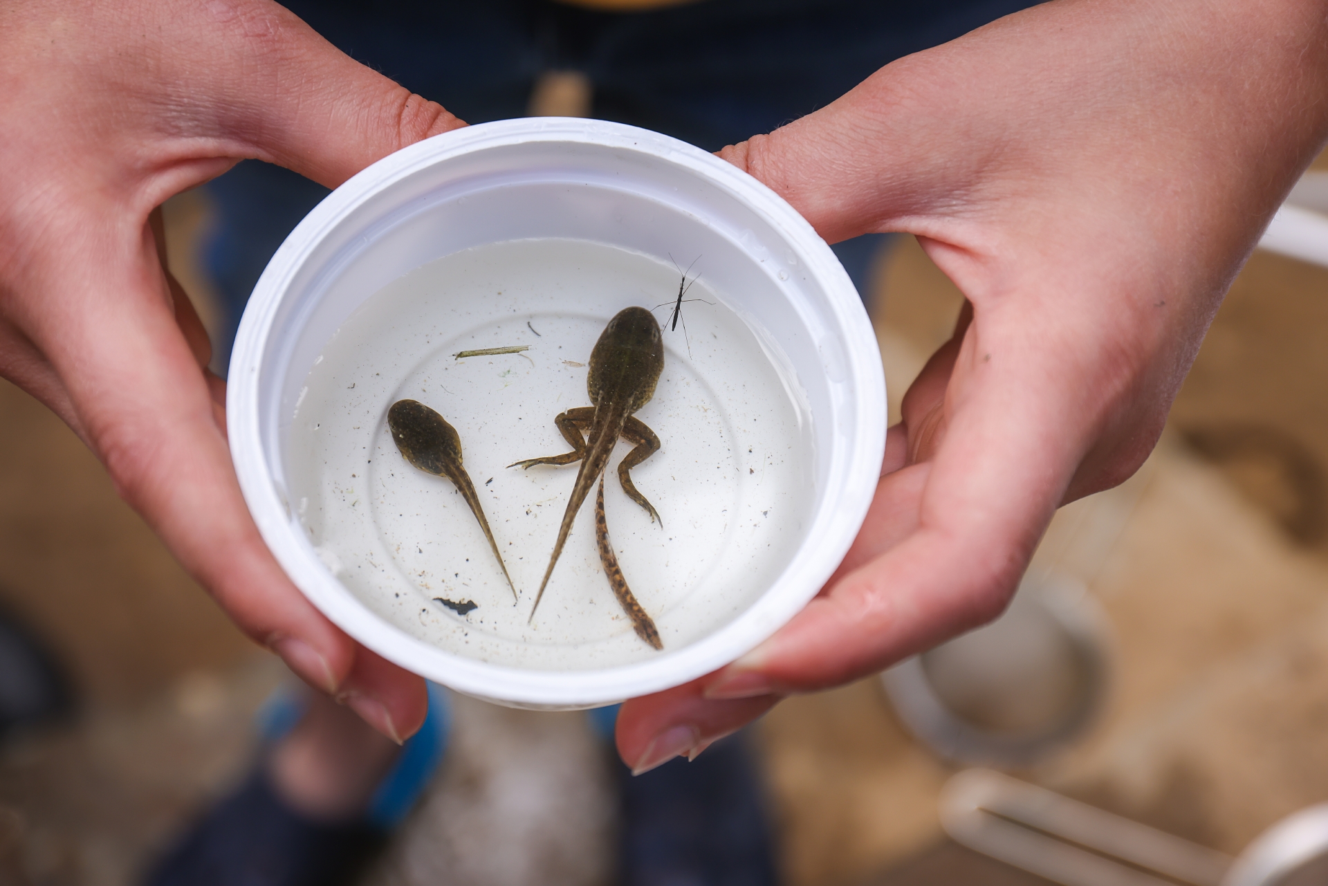 In der Lippe leben viele Lebewesen, die die Teilnehmer*innen während der Exkursion aus der Nähe betrachten können.