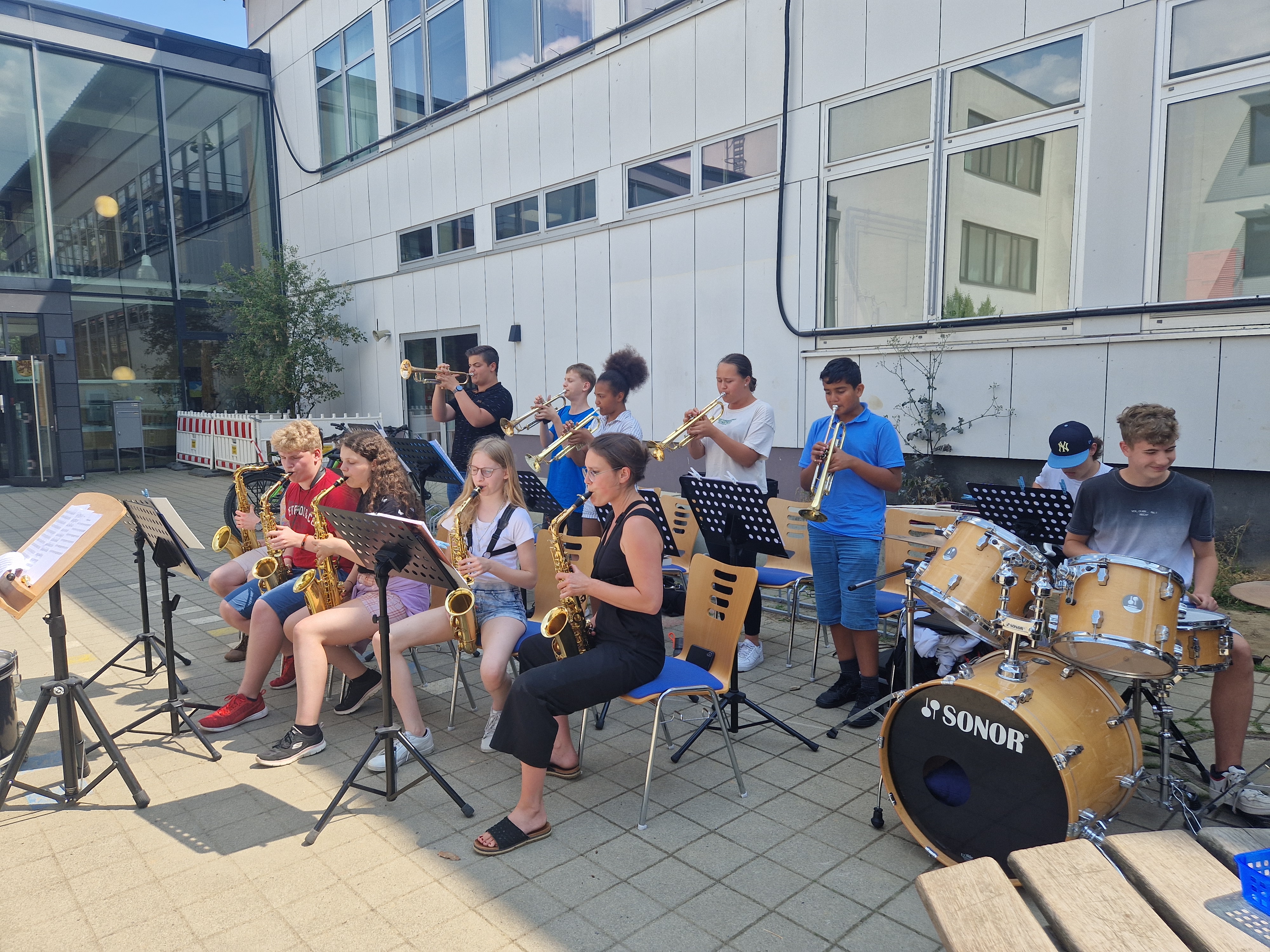 Zum Richtfest des Erweiterungsbaus des Julius-Spiegelberg-Gymnasiums Vechelde spielte das Schulorchester.