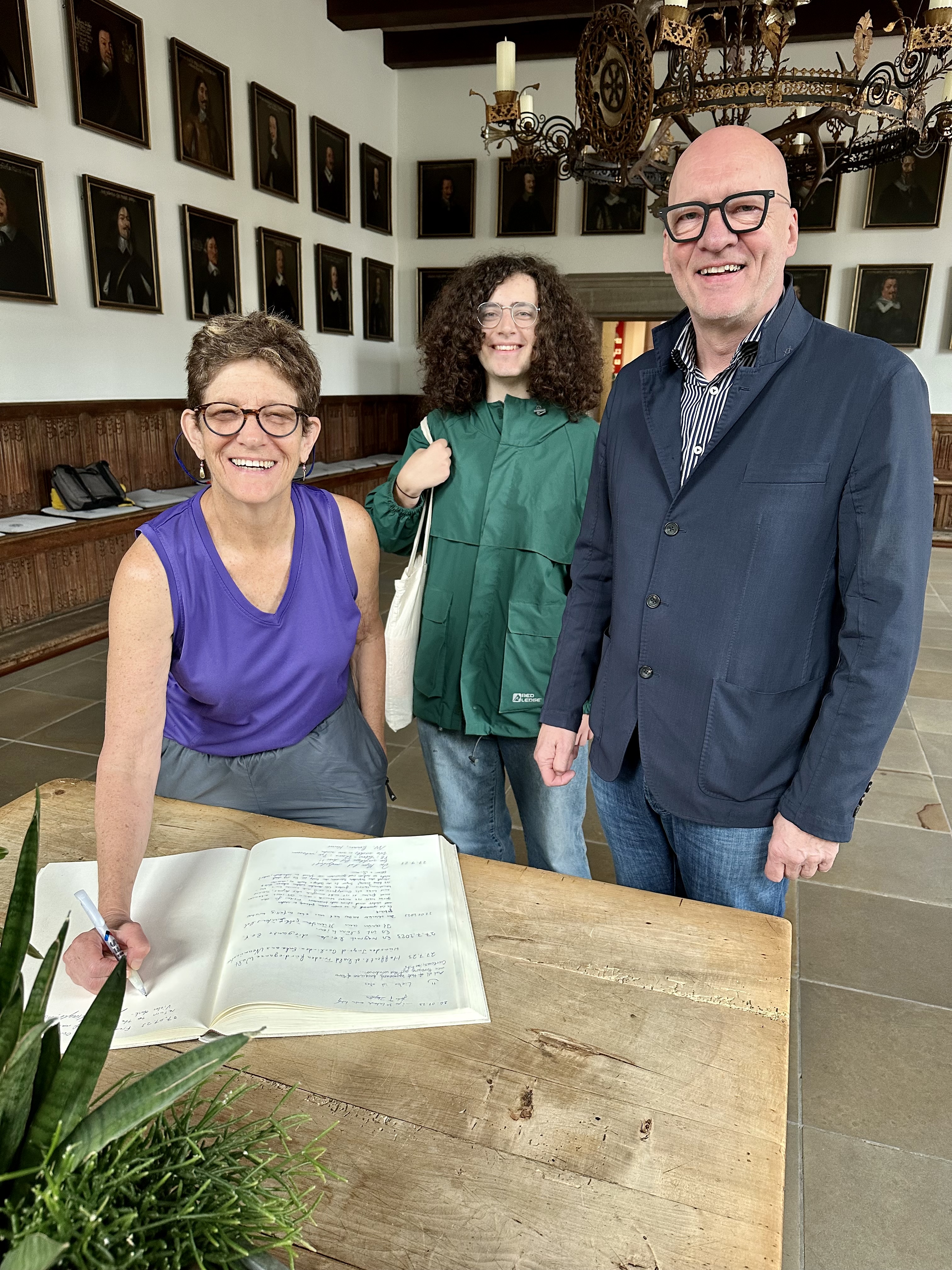 Von links: Leslie Mayro, Bruno Fleischman Mayro und Erster Stadtrat Wolfgang Beckermann.