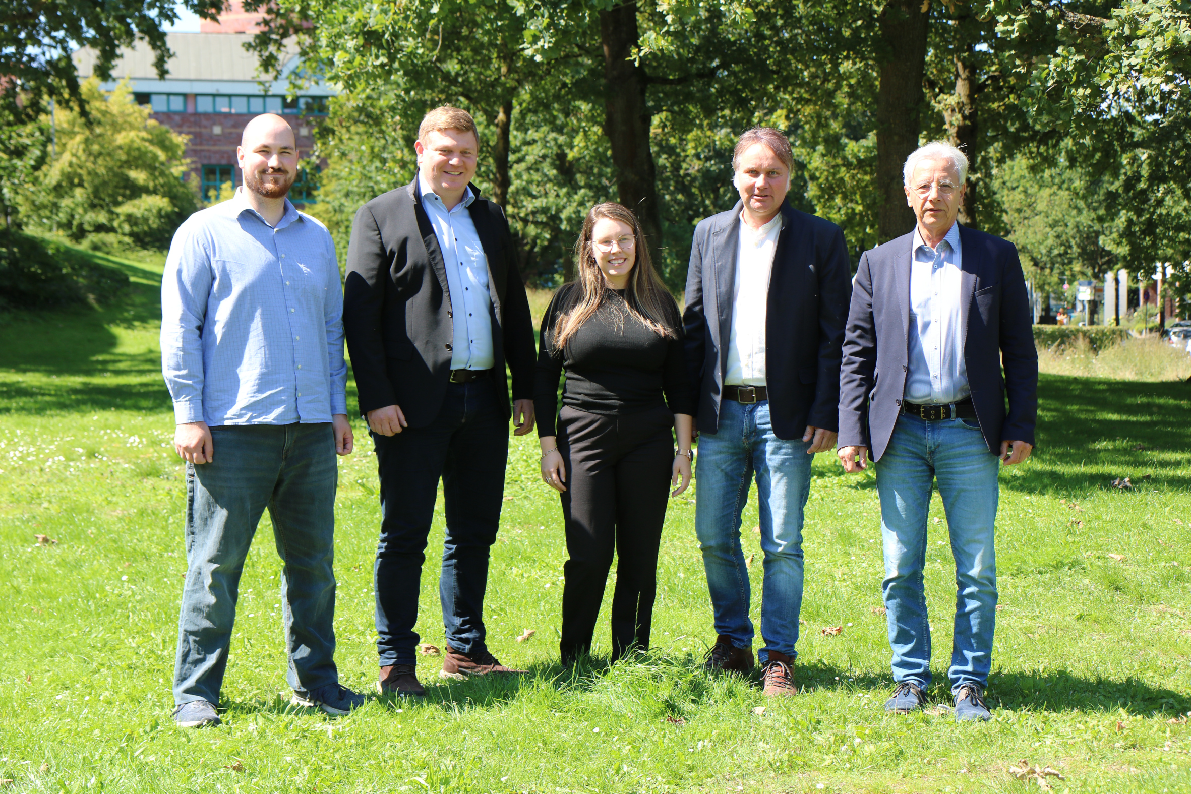 v.r.n.l.: Chris Senior (Projektverantwortlicher vom Wasser- und Bodenverbands der Mittleren Niers), Parviz Marandi (Geschäftsführer des Wasser- und Bodenverbands der Mittleren Niers), Tena Galovic (Projektverantwortliche für NiersCon beim Kreis Viersen), Dr. Bernd Steinweg (Amtsleiter für Umweltschutz), Rainer Röder (Dezernent für Planen, Bauen und Umwelt)