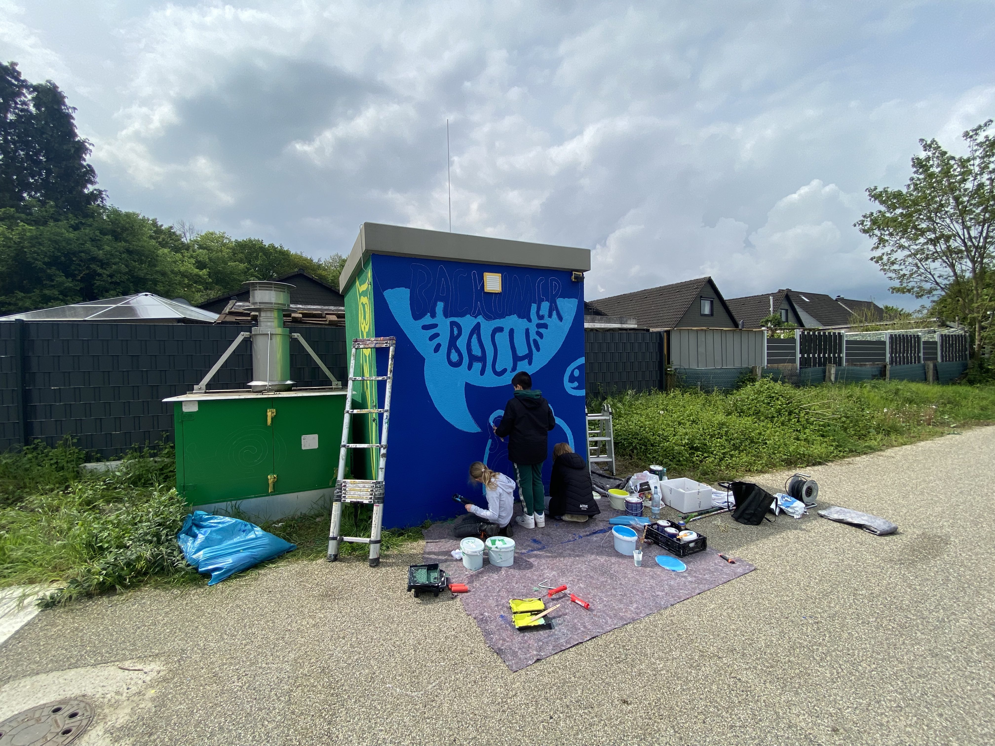 Schüler*innen des städtischen Gymnasiums haben in Kooperation mit der Emschergenossenschaft und "die Urbanisten e.V." insgesamt vier Hochbauteile der Emschergenossenschaft an den renaturierten Emscher-Gewässern Resser Bach und Backumer Bach in Herten neu gestaltet.