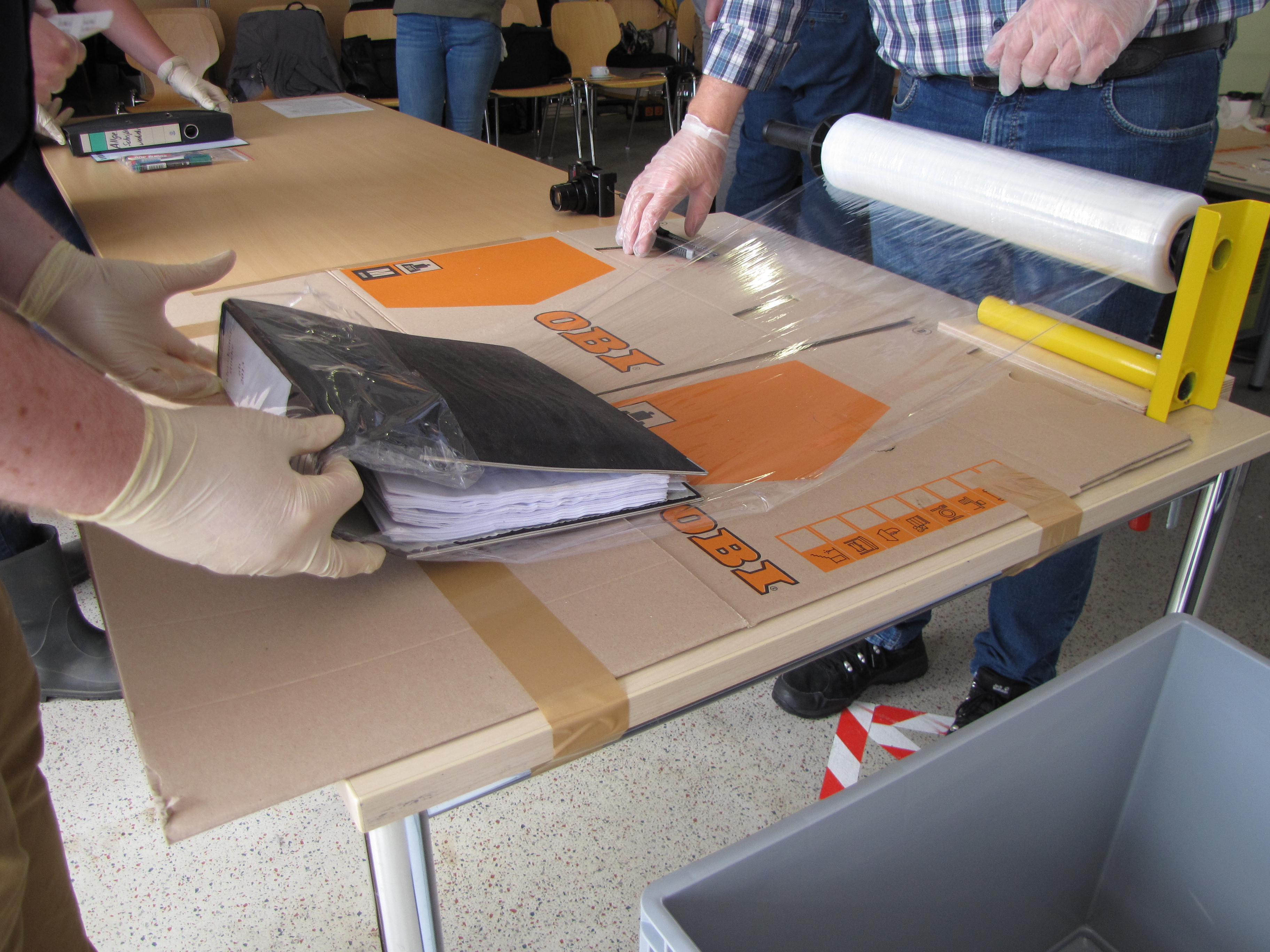 Was leicht aussieht, erfordert Wissen und Übung: Die Archivarinnen und Archivare übten unter anderem die Umsetzung der richtigen Verpackungstechniken für den Notfall. Foto Stadtarchiv Hamm
