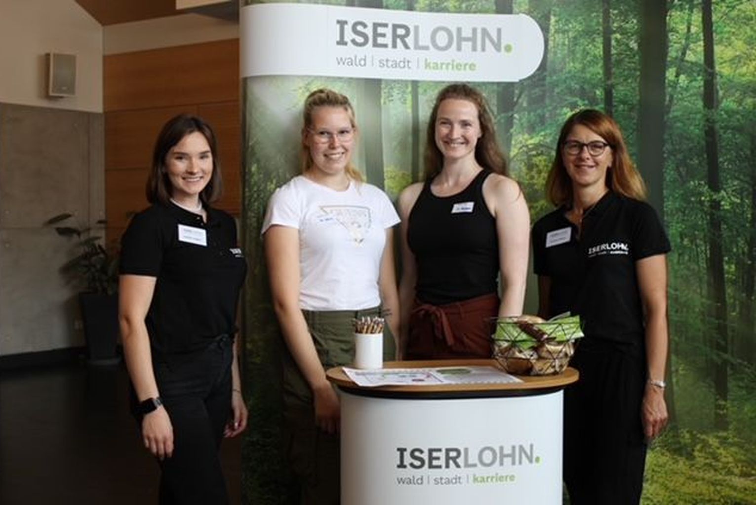 Freuen sich über den Erfolg der ersten internen Ausbildungsmesse: (v.l.) Isabelle Langner, Angelina Schulz, Joanne Henigan (Bereich Personal) und Carmen Malkus (Ausbildungsleiterin).