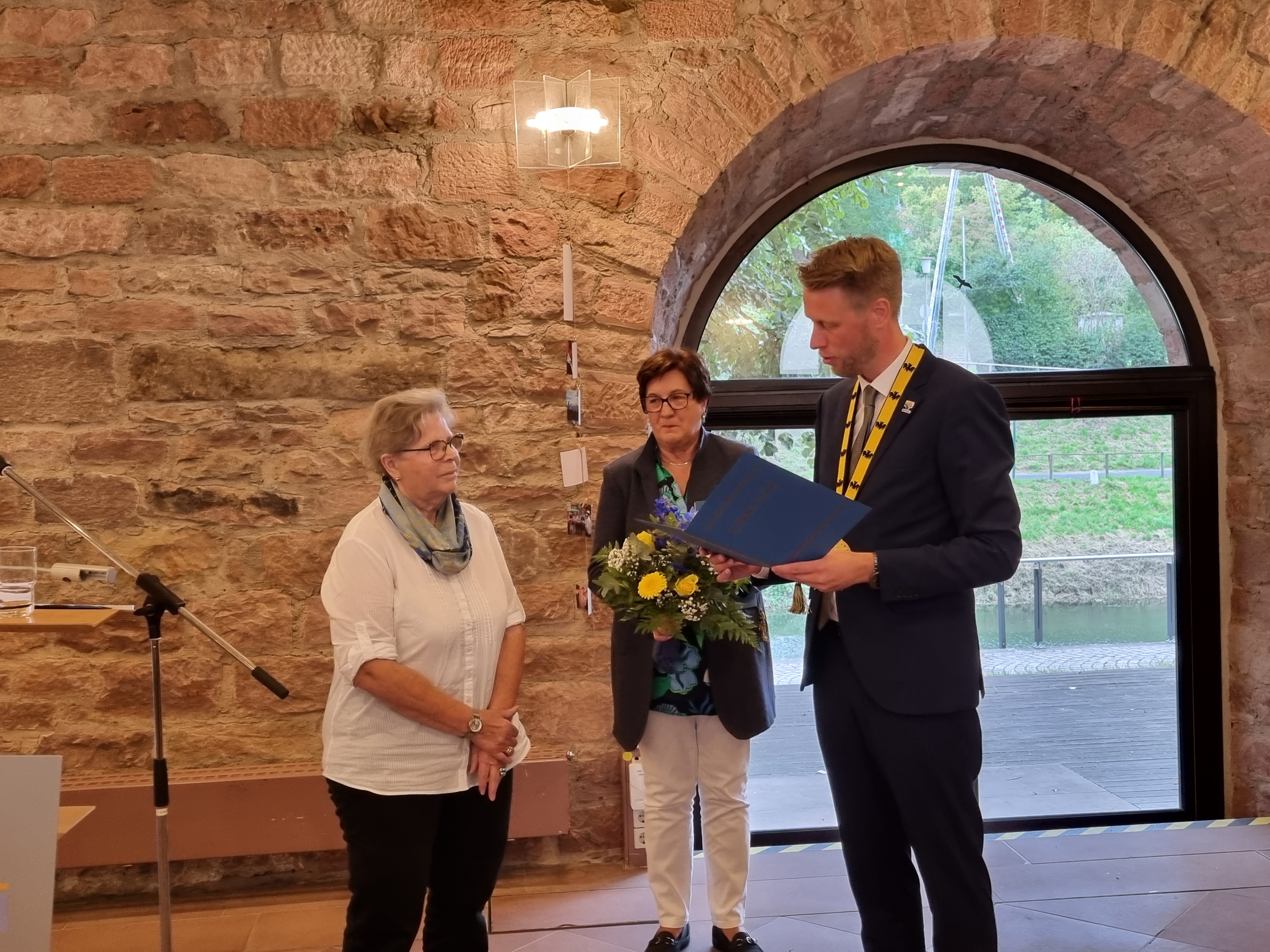 Stellvertretend für alle Gastfamilien dankte OB Herrera Torrez Inge Schwenk (links) und Marlene Schuon (Mitte). Foto: Stadt Wertheim
