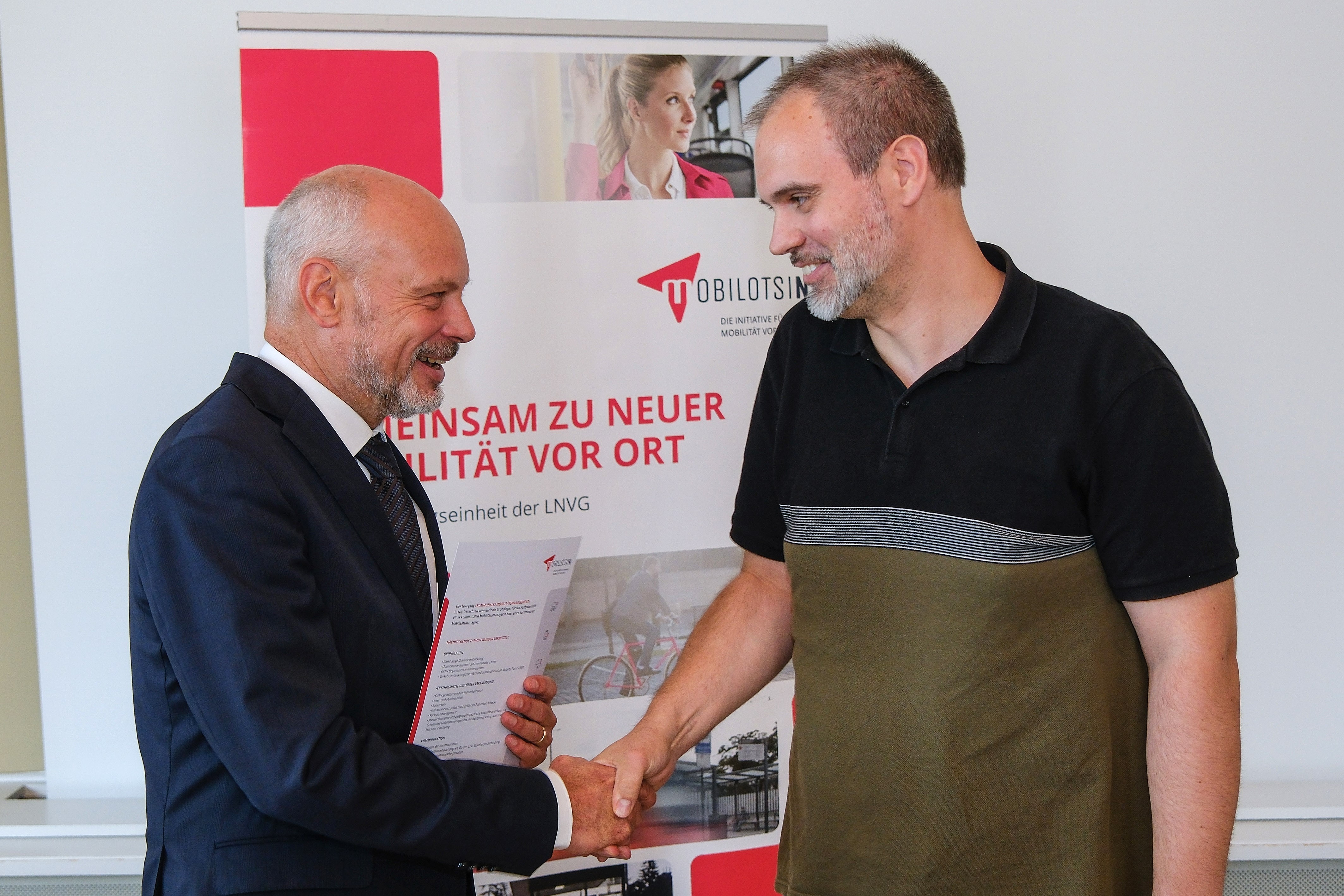 Abteilungsleiter Christoph Wilk (links) gratuliert Malte Wanzek (rechts) und zur Teilnahme am Kurs.