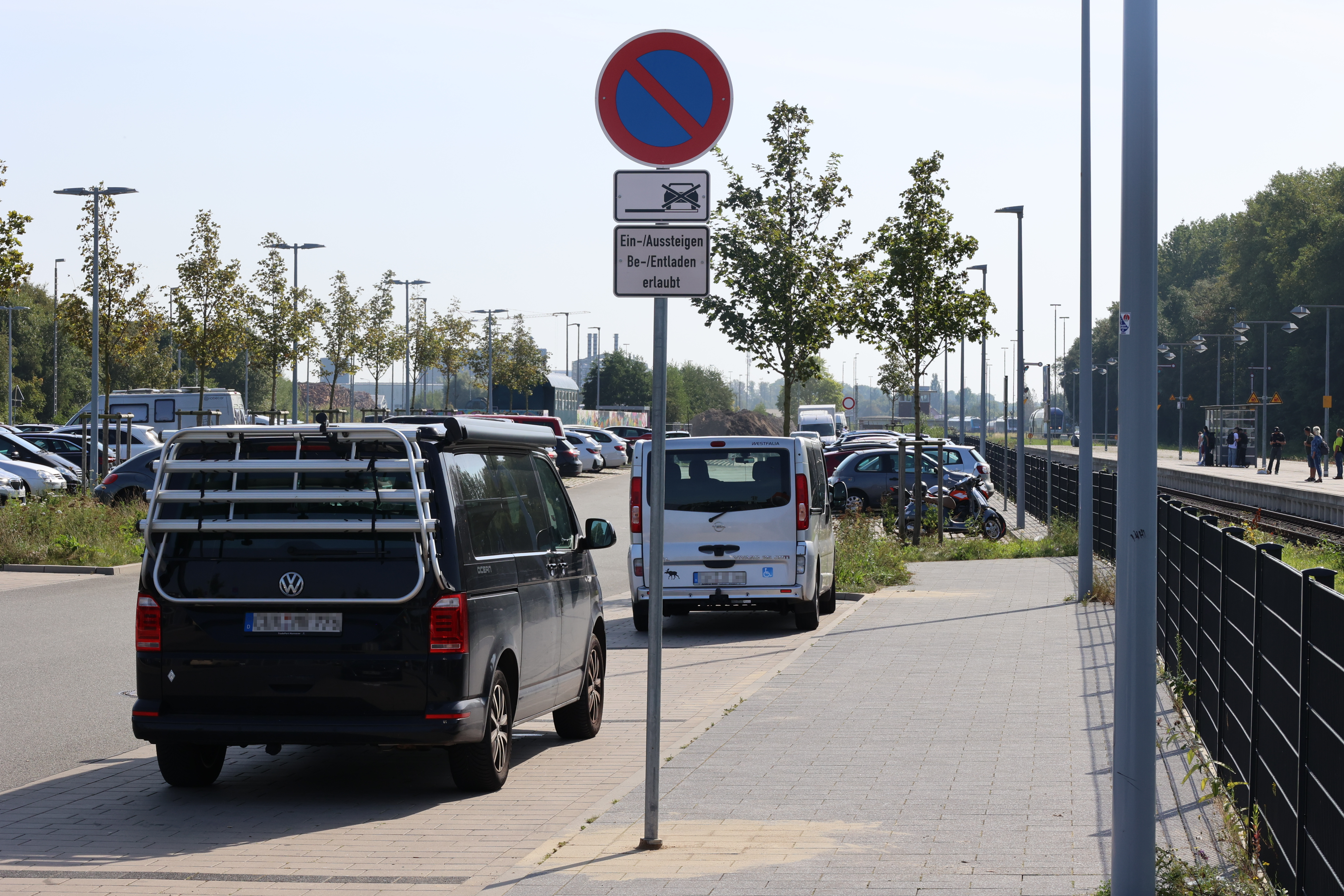 Die hinteren der drei parallel zu den Gleisen gelegenen aG-Parkplätze wurden aufgehoben und zu Plätzen umgewandelt, an denen zu Zwecken des Ein- und Aussteigens sowie Be- und Entladens gehalten werden darf. Foto: Stadt Cuxhaven