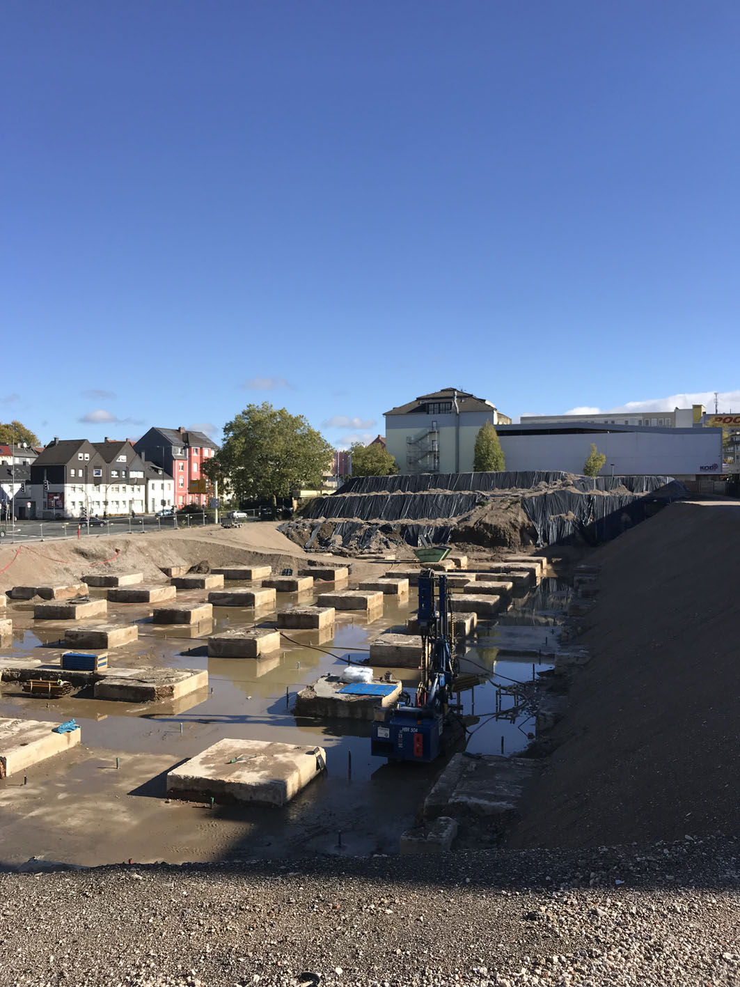 Die sichtbar gewordene Bodenplatte mit den herausragenden Fundamentköpfen bleibt bei der künftigen Bebauung des Schillerplatz-Areals erhalten.