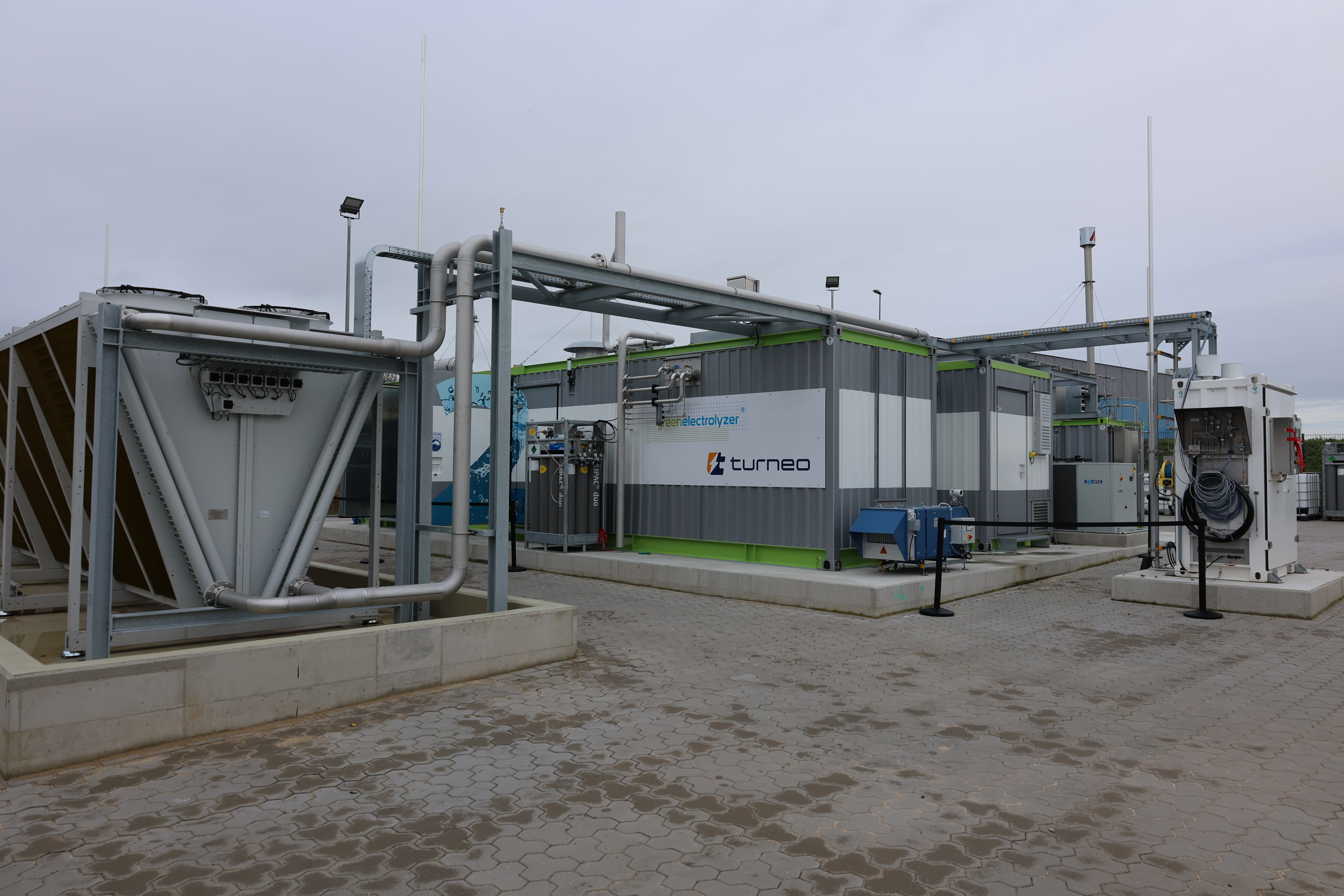 Medienarchiv Seit Mittwoch produziert eine Zwei-Megawatt-Elektrolyseanlage der Turneo GmbH, einem Gemeinschaftsunternehmen der Hamburger Karlsson GmbH und des Energiedienstleisters EWE, in Cuxhaven grünen Wasserstoff und liefert damit den Treibstoff für das erste von vier Versorgungsschiffen der Mittelplate-Flotte des Energieunternehmens Wintershall Dea. Foto: Stadt Cuxhaven