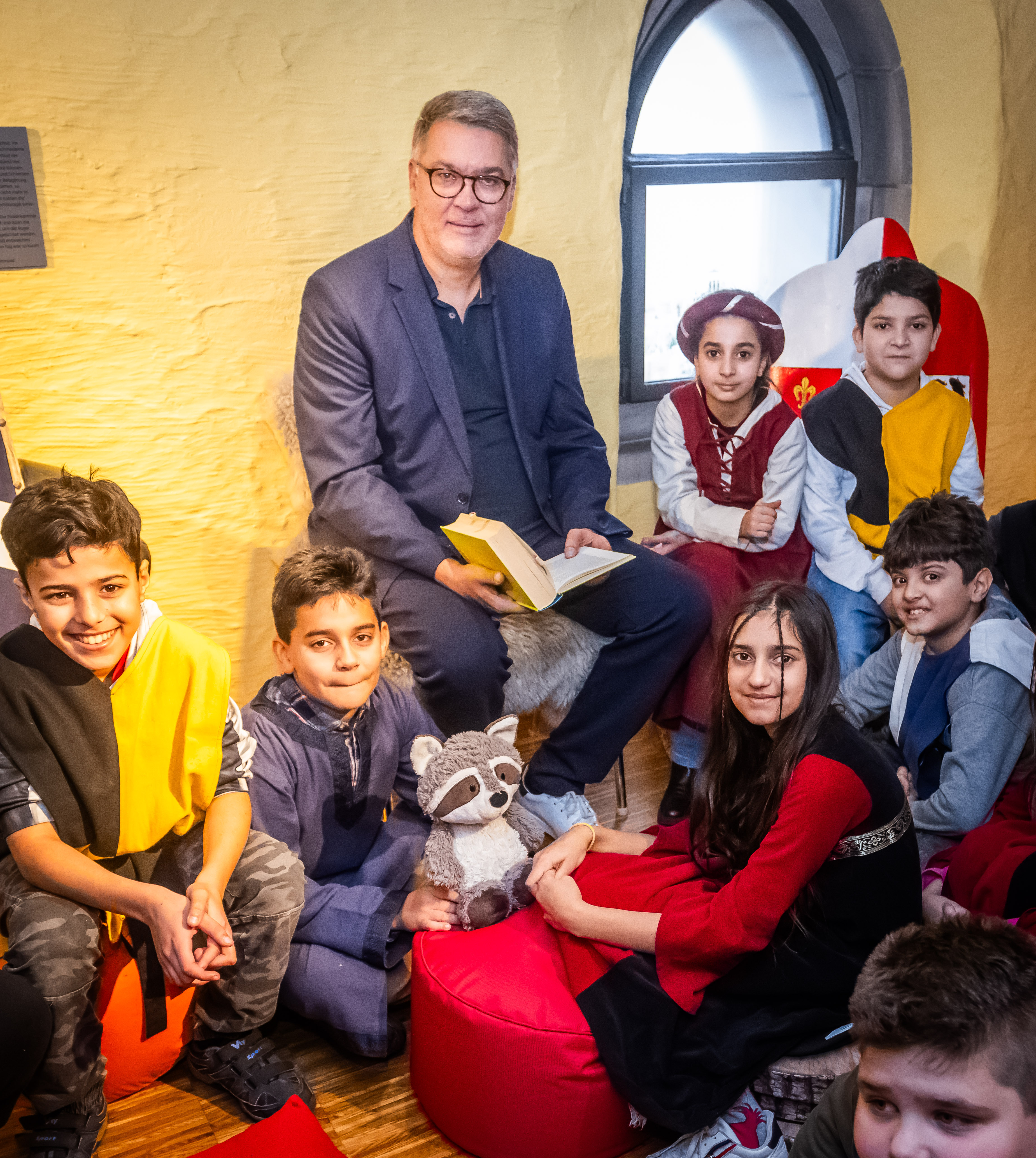 Oberbürgermeister Thomas Westphal las vor Kindern der Oesterholz Grundschule im Kindermuseum Adlerturm.
