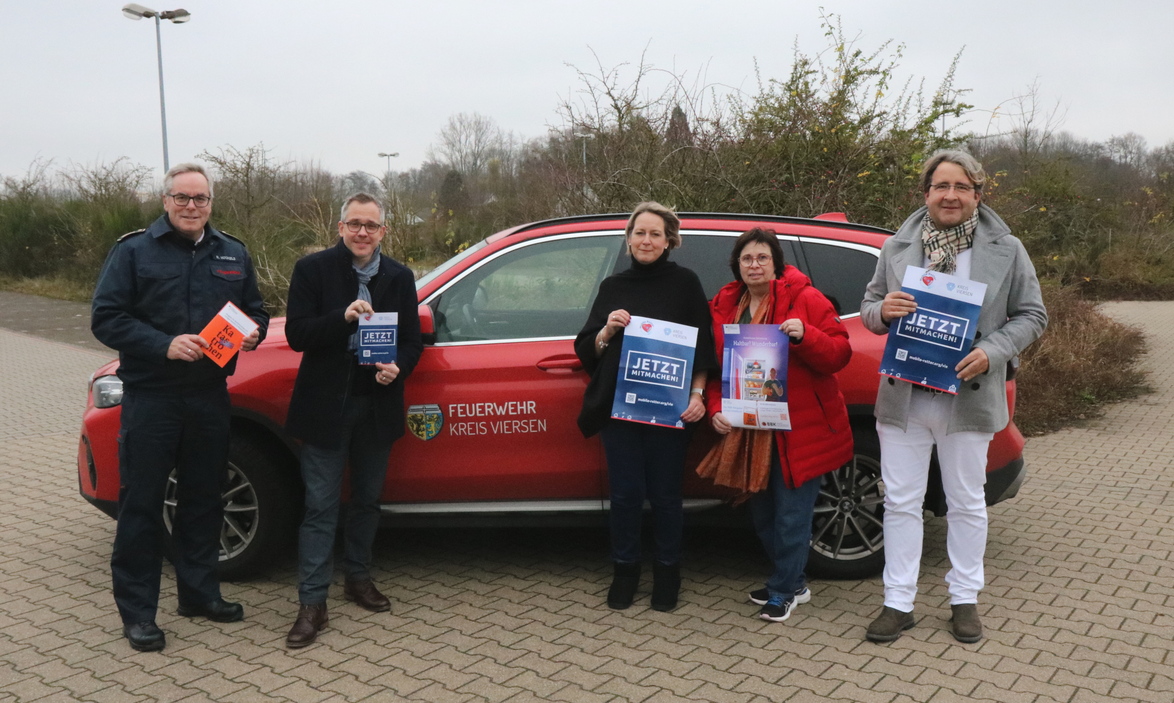 v.l.n.r.: Rainer Höckels, Kreisbrandmeister, Jens Ernesti, Dezernent für Bevölkerungsschutz im Kreis Viersen, Katrin Verkamp-Kuster vom Kreis Viersen, Regina Bormann, Kreisvertauensapothekerin und Dr. Arndt Berson, Vorsitzender der Kreisstelle KVNO
