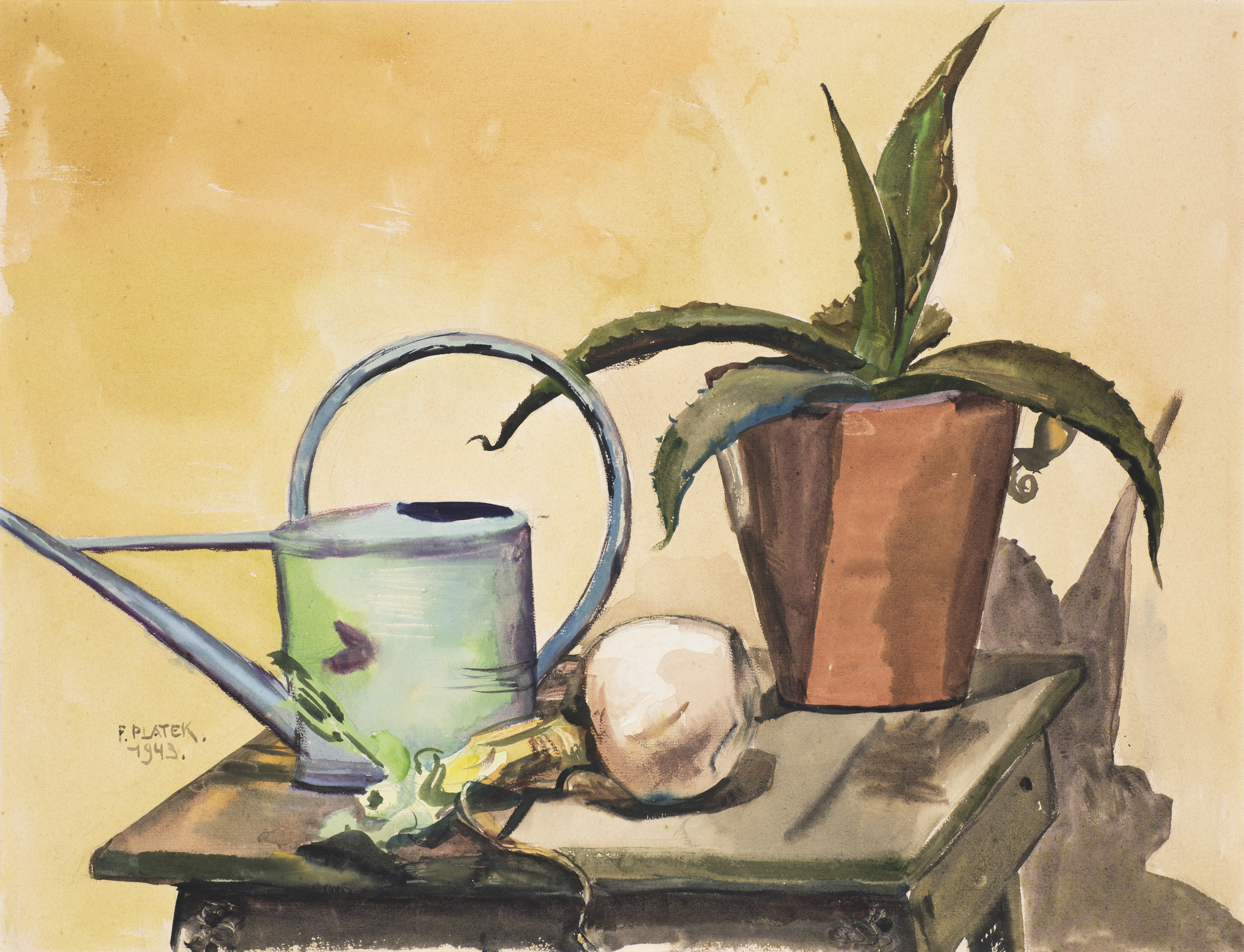 Felka Platek, Stillleben mit Gießkanne und Agave, 1943