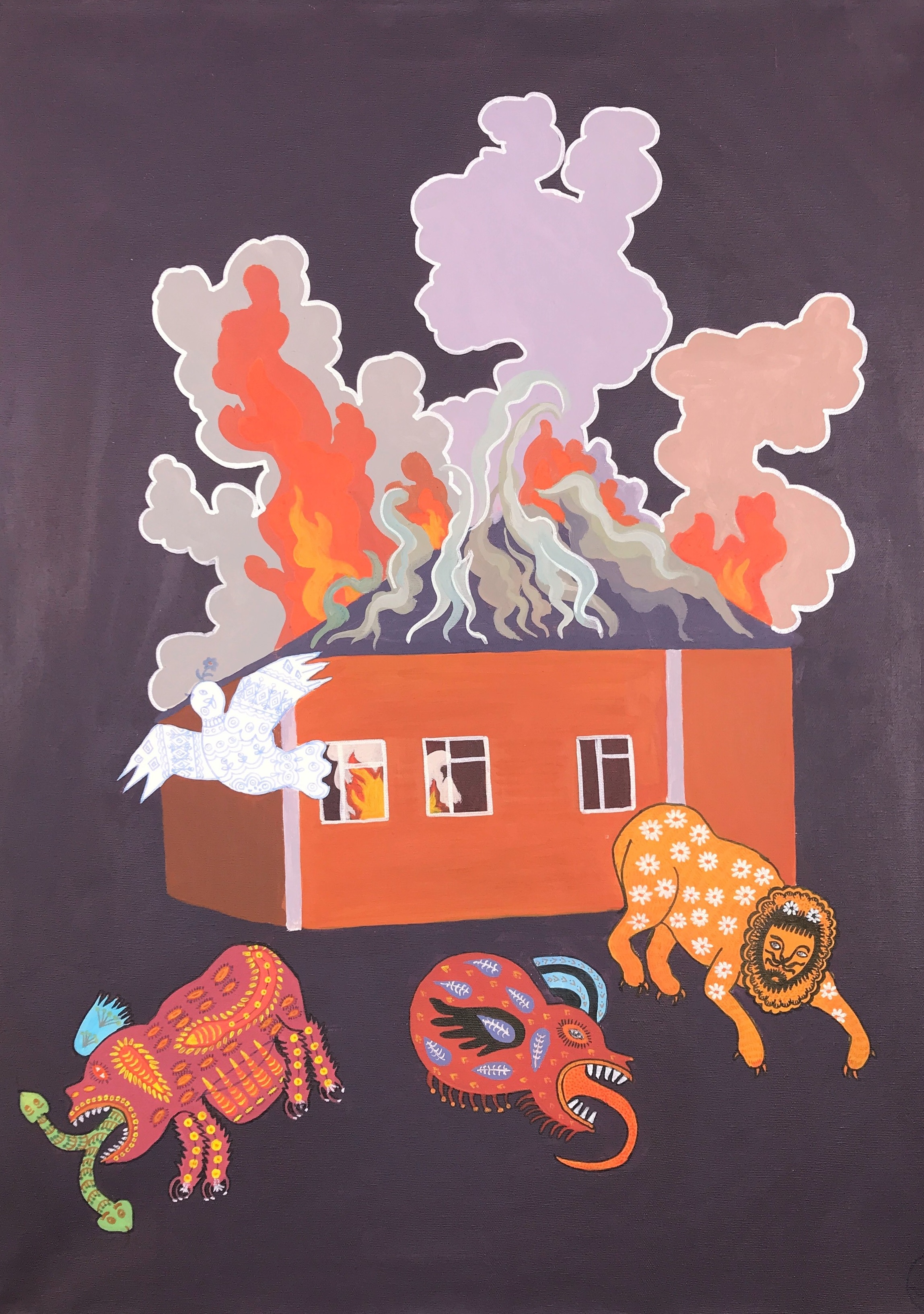 Ein Werk von Olena Ukraintseva mit dem Titel: „Das Museum wurde zerbombt. Wir malen etwas Neues“, 2022 Leinwand, Acryl