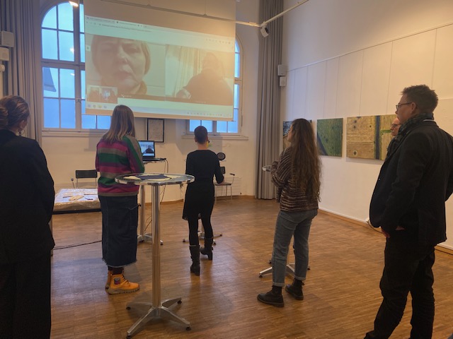 Pressegespräch zur Ausstellung PostMost mit "Live-Schalte" in die Ukraine, aus dem Hoesch-Museum.