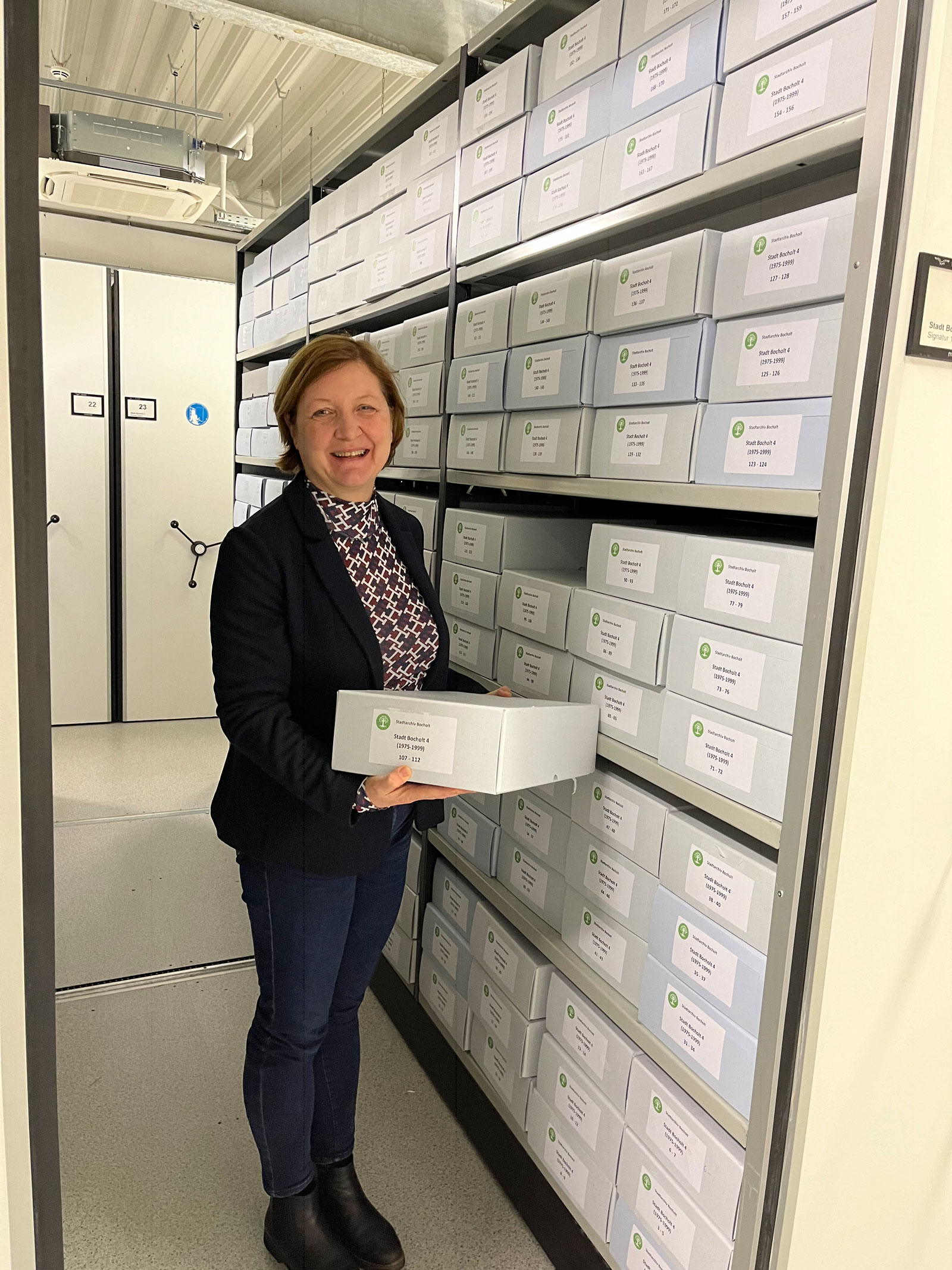 Stadtarchivarin Renate Volks-Kuhlmann lädt zu einem Blick in das sonst verschlossene Magazin des Stadtarchivs Bocholts ein.