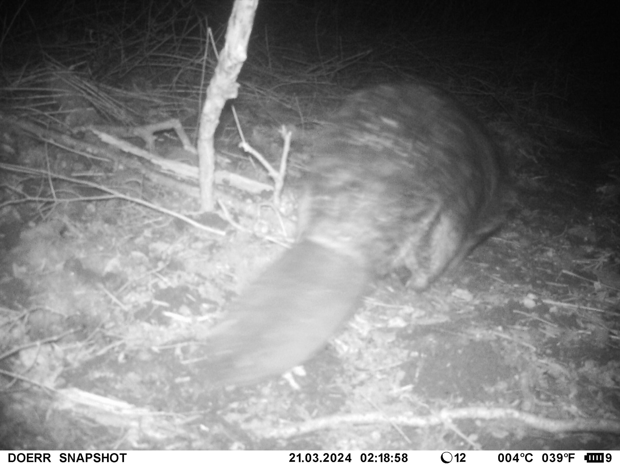Und da ist er: Der ins Emscher-Gebiet zurückgekehrte Biber ist in die Fotofalle der Emschergenossenschaft getappt. Sehr schön zu erkennen ist die „Biberkelle“, die das Tier von Nutrias unterscheidet,