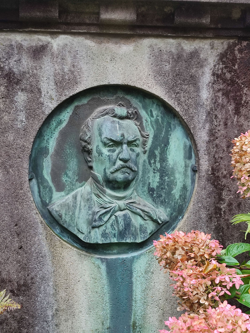 Porträtrelief von Carl August Schuchart auf seinem Grabstein, Hauptfriedhof Iserlohn (Foto: Rico Quaschny / Stadtarchiv Iserlohn)