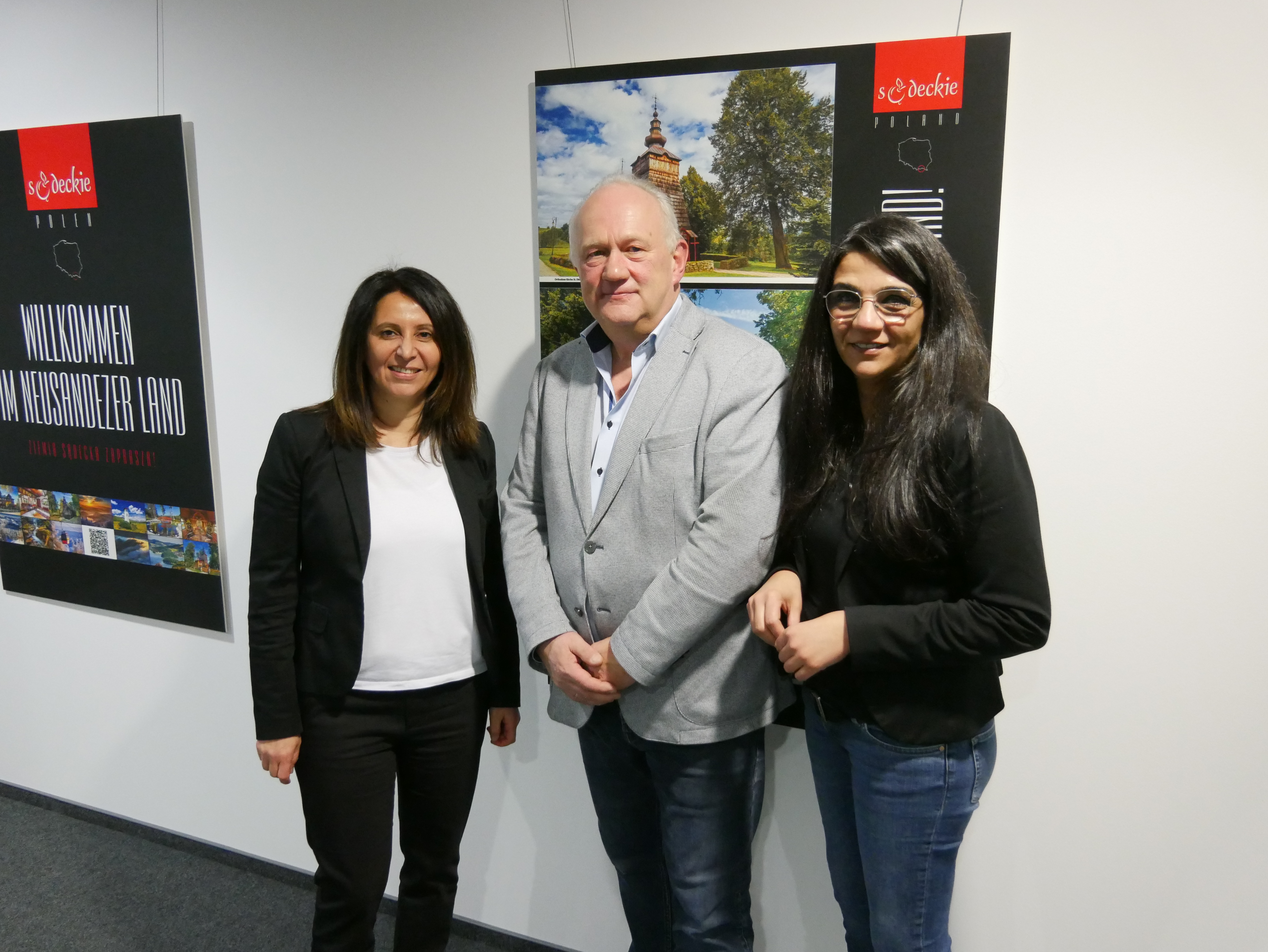 Die neue Sachgebietsleiterin KI Şaziye Altundal-Köse (links) mit Dezernent Holger Gutzeit und Şengül Ersan, Fachbereichsleiterin Zuwanderung und Integration. Foto Leonie Bleimling – Kreis Unna