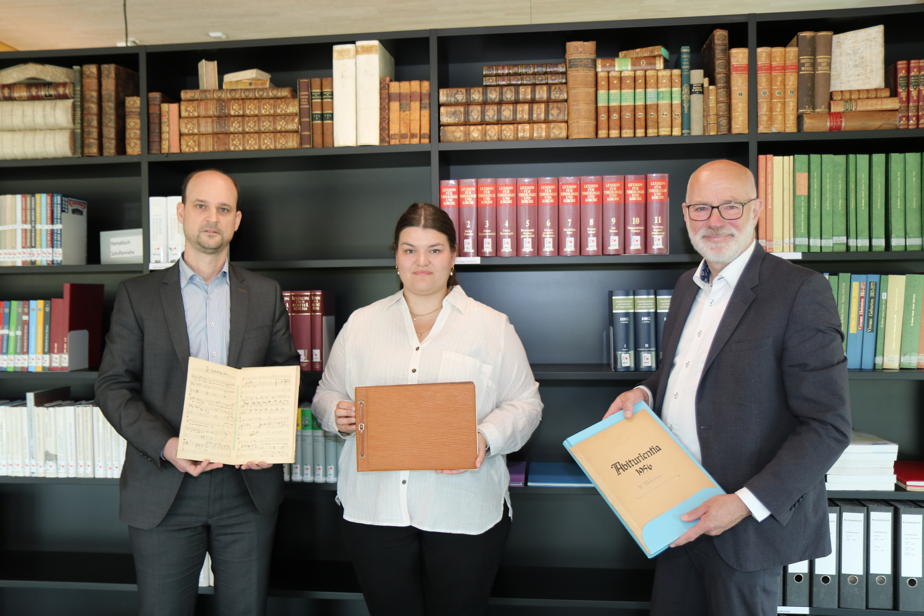 v.l.n.r.: Dr. Michael Habersack, Leiter des Kreisarchivs Viersen, Ann-Christin Thole, Mitarbeiterin des Kreisarchivs Viersen und Ingo Schabrich, Kreisdirektor und Kulturdezernent des Kreises Viersen