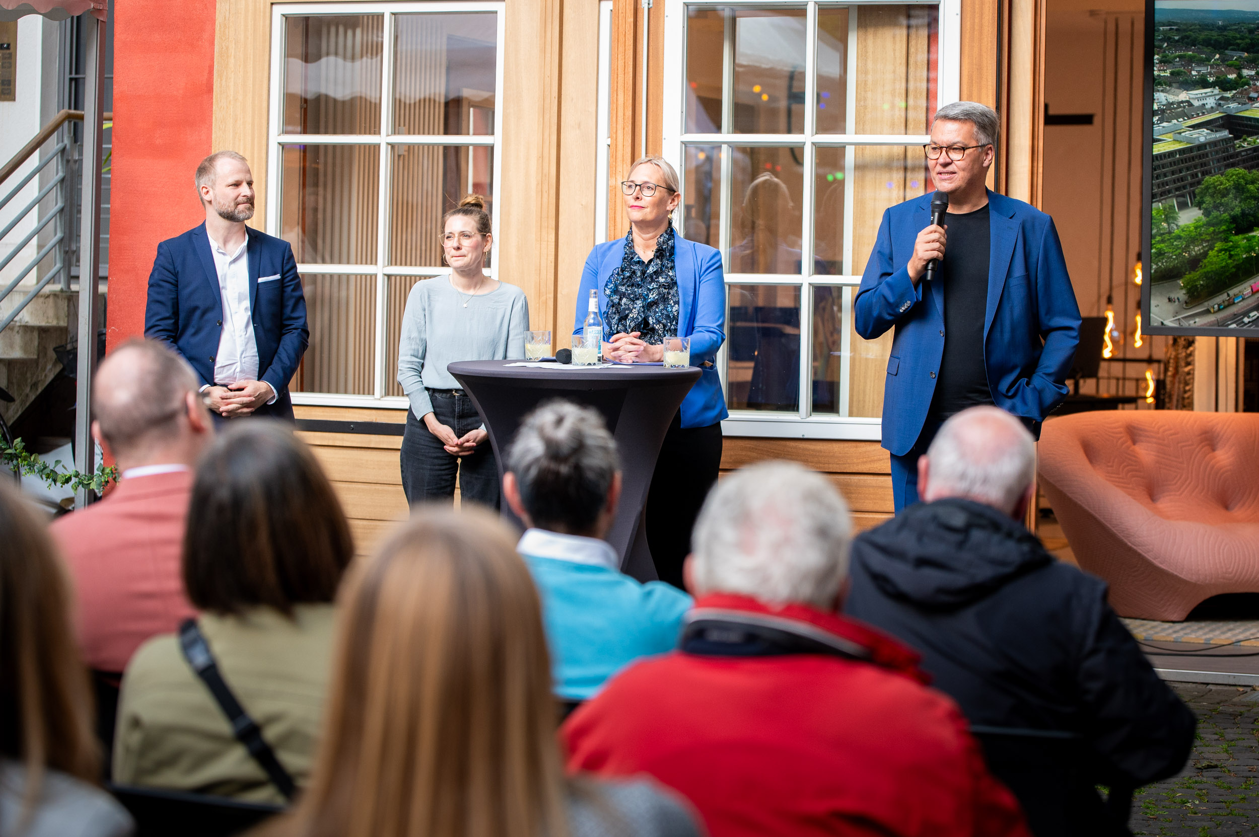 Oberbürgermeister Thomas Westphal (re) hält die Eröffnungsrede beim Markenlaunch-Event in Dortmund
