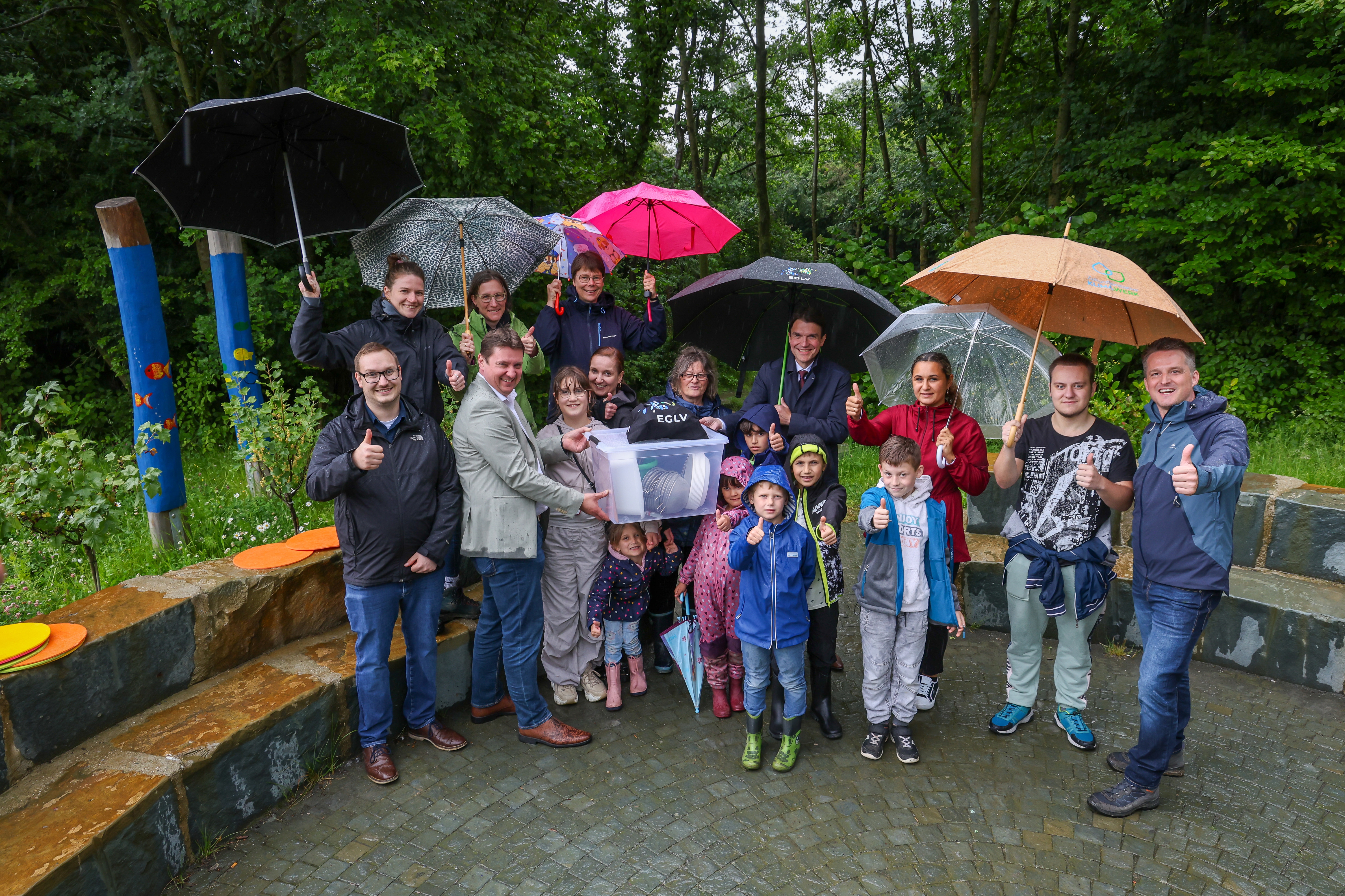 Es gibt ein neues Blaues Klassenzimmer am Deininghauser Bach. Gemeinsam mit den Kindern des Jugendzentrums D-Town weihten Rajko Kravanja, Bürgermeister der Stadt Castrop-Rauxel, und Prof. Dr. Uli Paetzel, Vorstandsvorsitzender von Emschergenossenschaft und Lippeverband, den neuen Lernort im Freien ein.