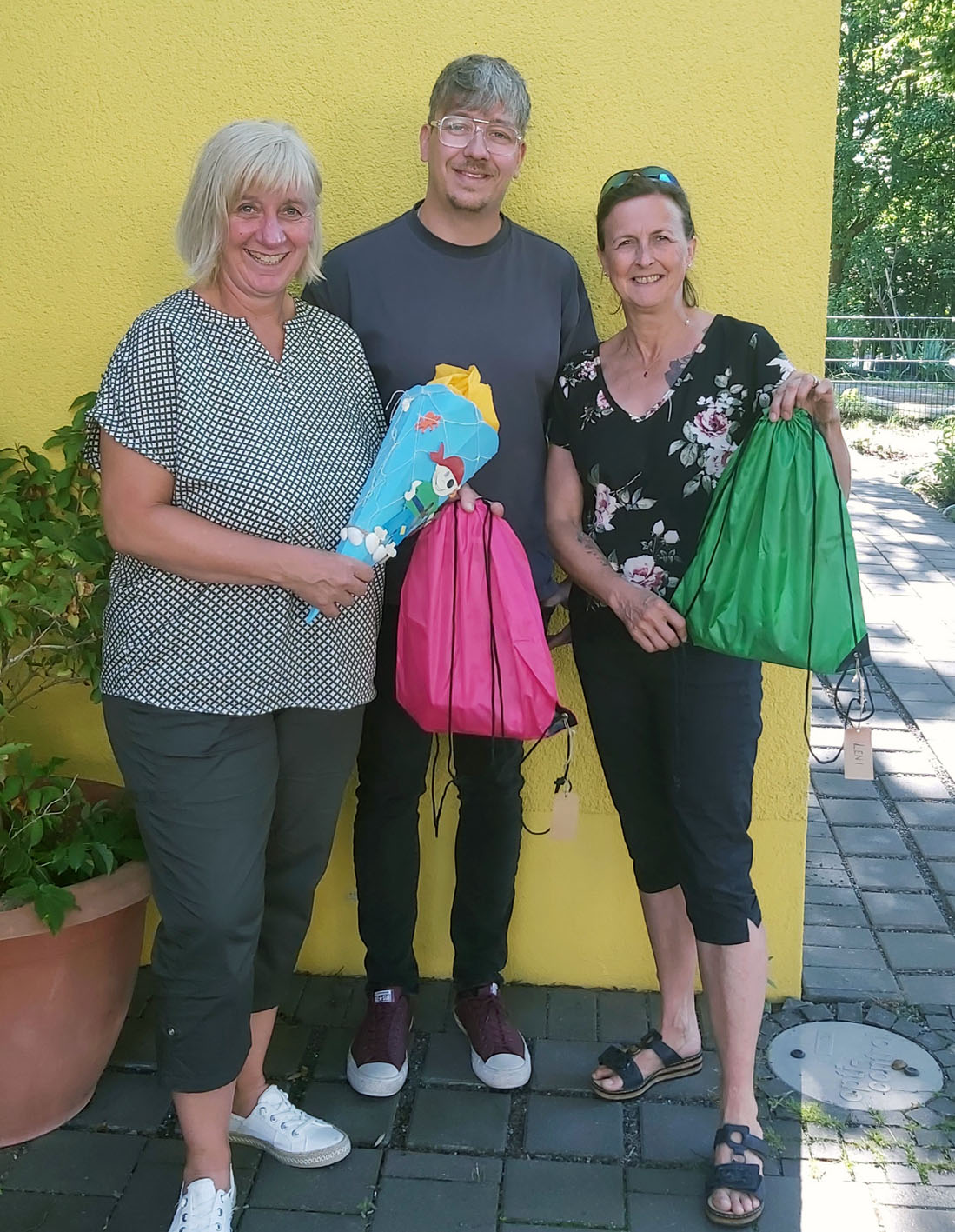 Claudia Waligora, Peer Witt und Tanja Ludwig packten in der städtischen Kita Markenfeld die Schultüten für die künftigen Schulkinder.