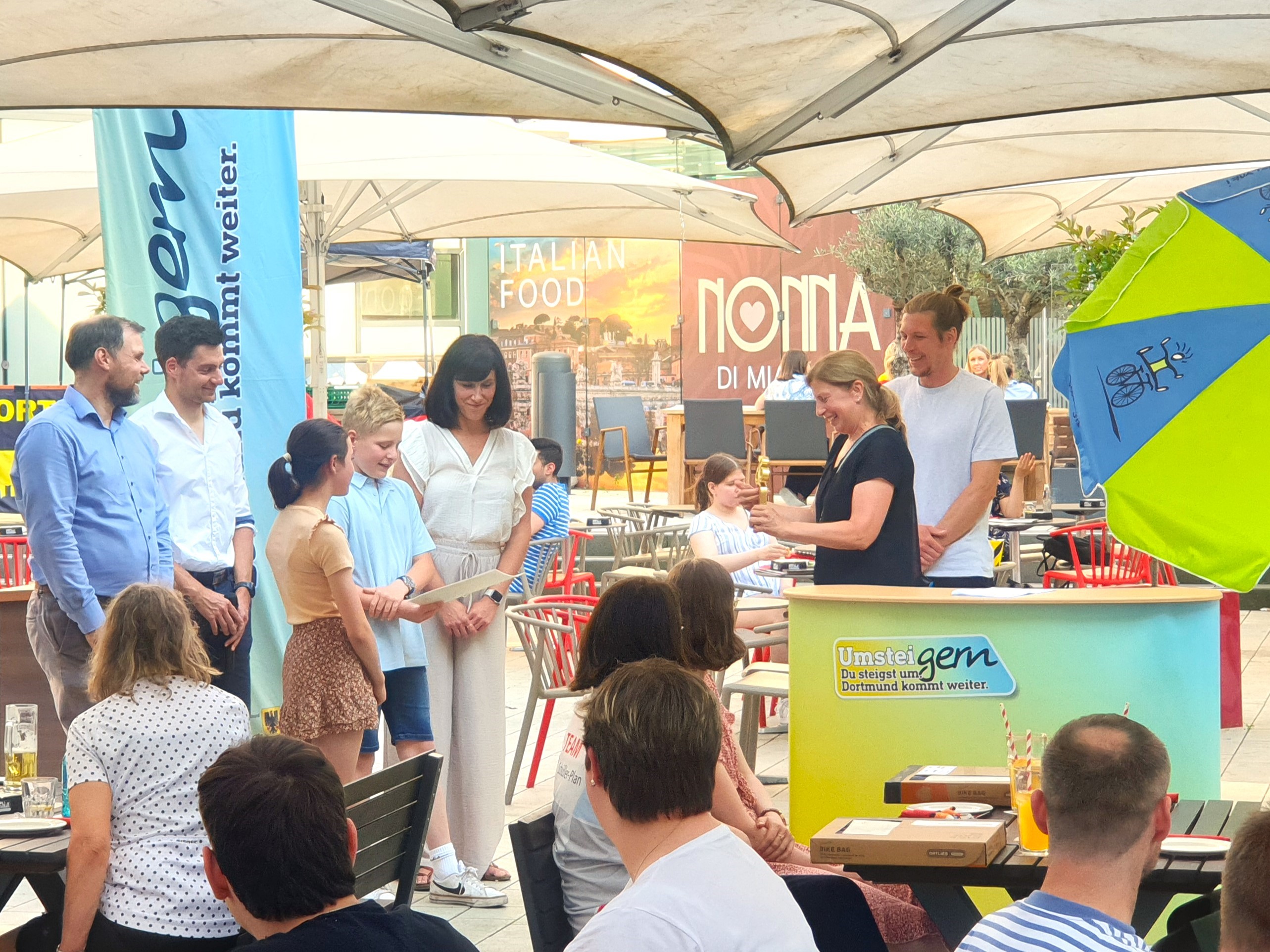 Die Leiterin des Dortmunder Tiefbauamts, Sylvia Uehlendahl (2.v.r.), freute sich besonders über die vielen Schüler*innen, die sich beim STADTRADELN engagiert haben.