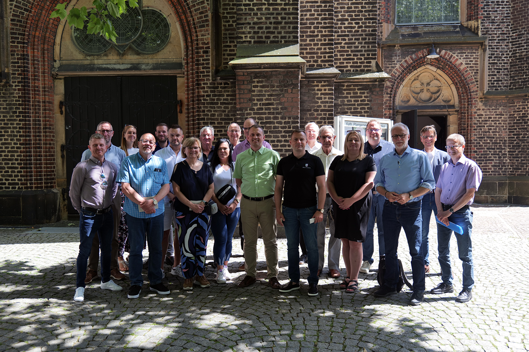 Die Delegationen der Partnerstädte Arras, Doncaster und Szczytno besuchten anlässlich der gemeinsamen Jubiläumsveranstaltung mit Vertretern der Stadt Herten verschiedene kulturelle und städtische Einrichtungen, wie hier die katholische Kirche Sankt Antonius. (Foto: Stadt Herten_Corina Plötz)
