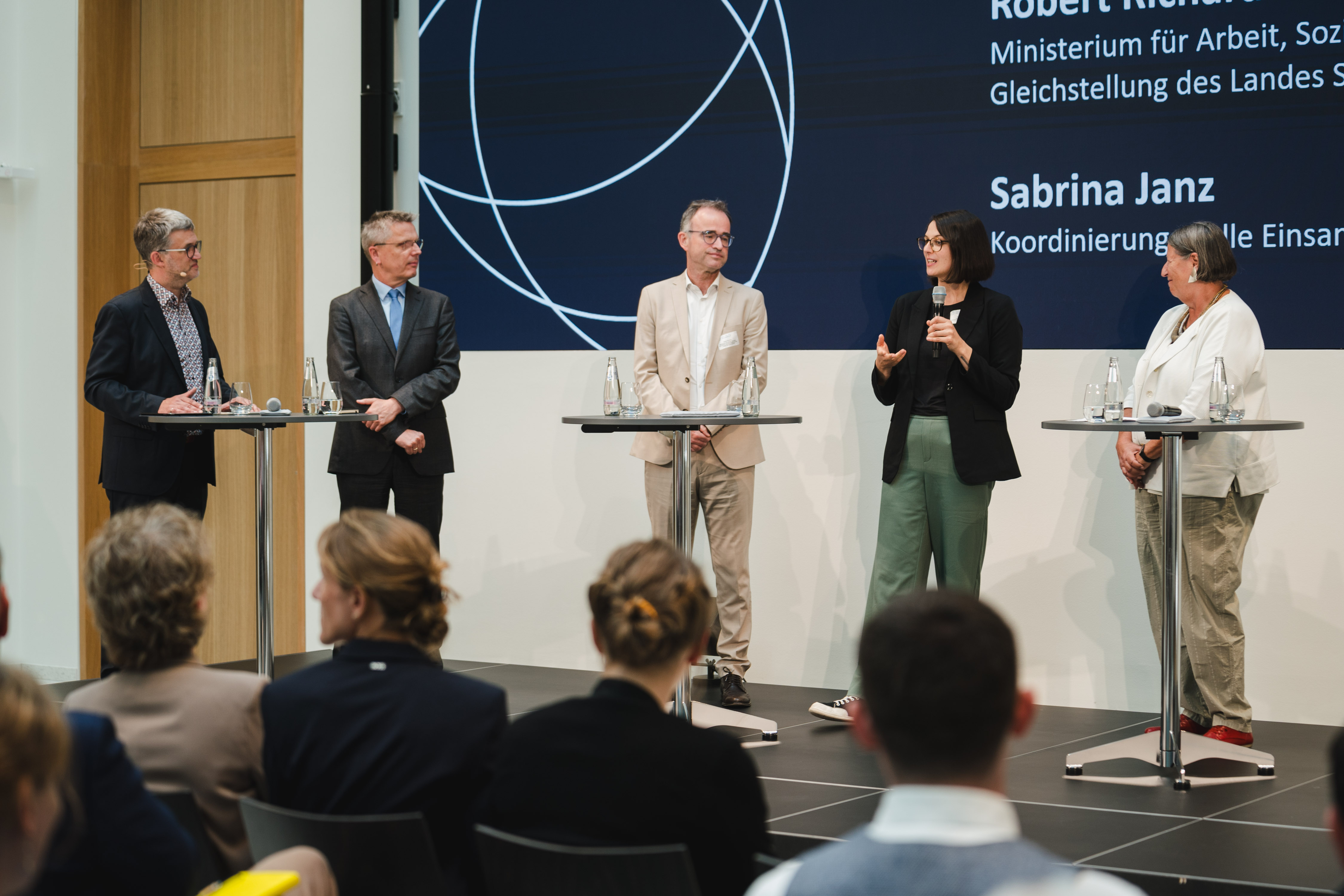 Sabrina Janz (zweite von rechts) von der Koordinierungsstelle Einsamkeit bei der Auftaktveranstaltung zur Aktionswoche in Berlin.