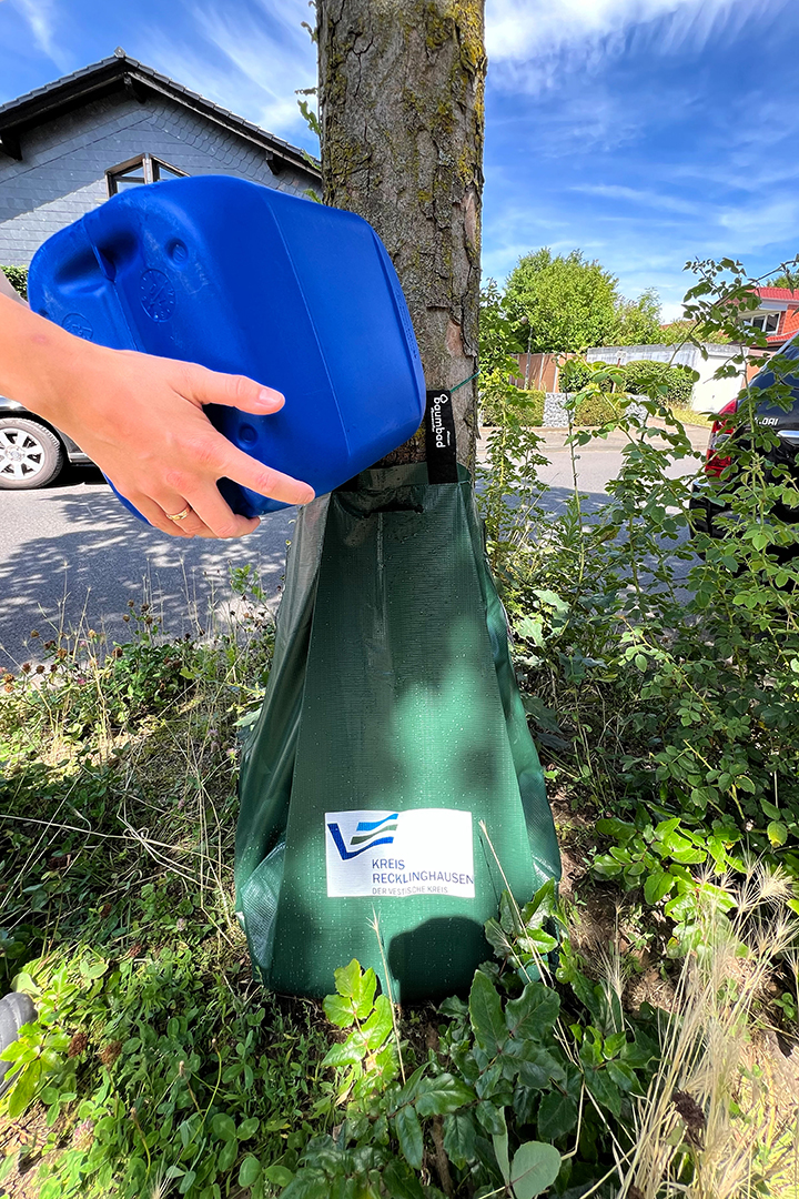 Die Stadt Herten verteilt in Kooperation mit dem Kreis Recklinghausen kostenlos Bewässerungsbeutel zur Bewässerung von Stadtbäumen. (Foto: Kreis Recklinghausen_Svenja Küchmeister)
