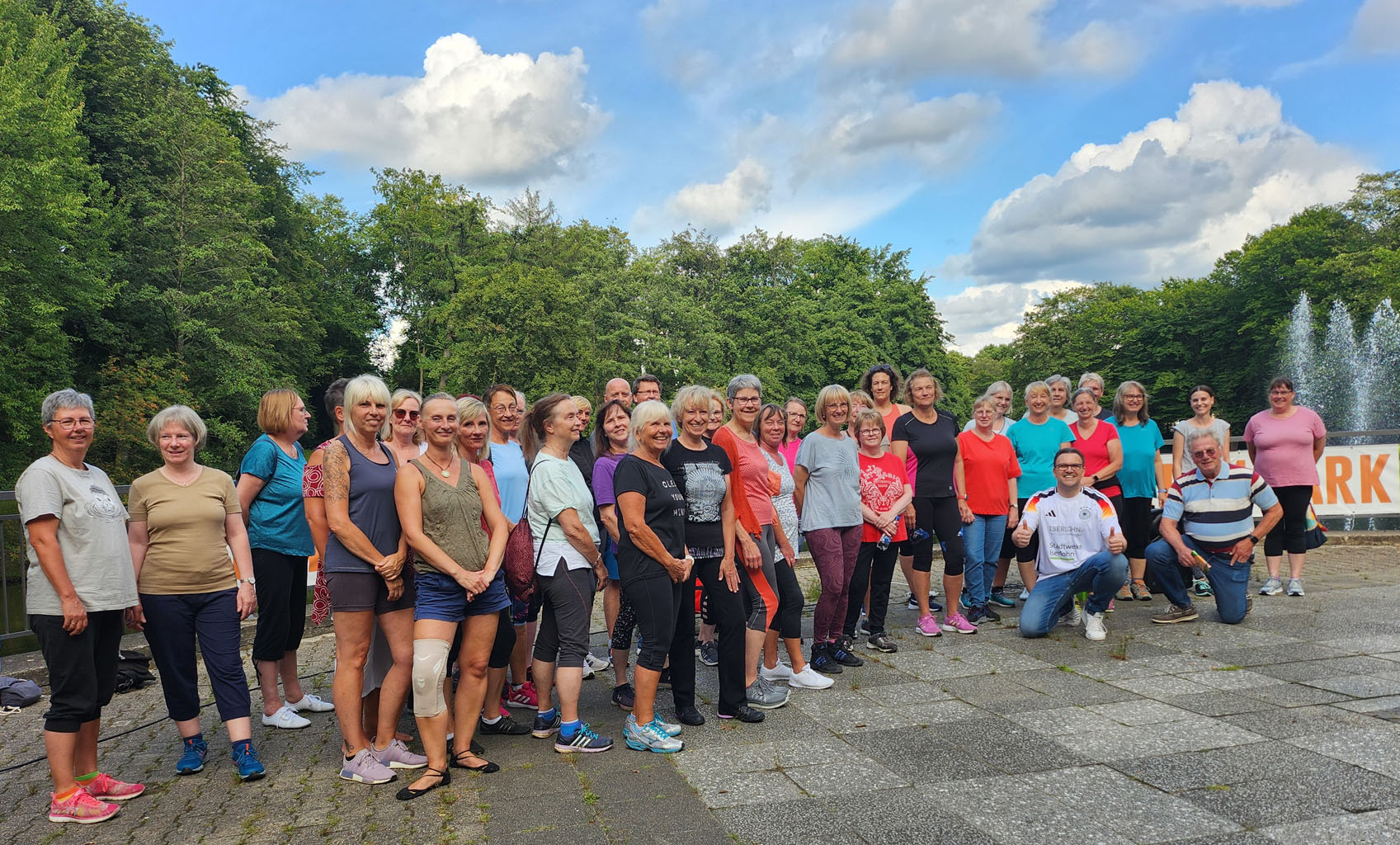 Rund 40 Sportbegeisterte kamen zur Eröffnung der diesjährigen Aktion Sport im Park und dem anschließenden AROHA-Kurs in den Volksgarten.