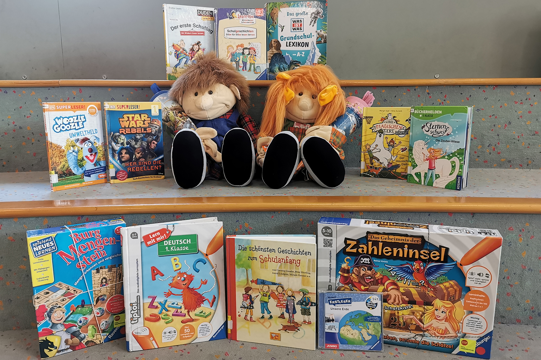 Ein kostenloser Schnupperausweis der Stadtbibliothek Herten ermöglicht Erstklässlerinnen und Erstklässlern die Ausleihe u.a. von Erstlese- und Vorlesebüchern, Kindersachbüchern, Kinder-CDs und -DVDs, Gesellschafts- und Konsolenspielen. (Foto: Stadt Herten)