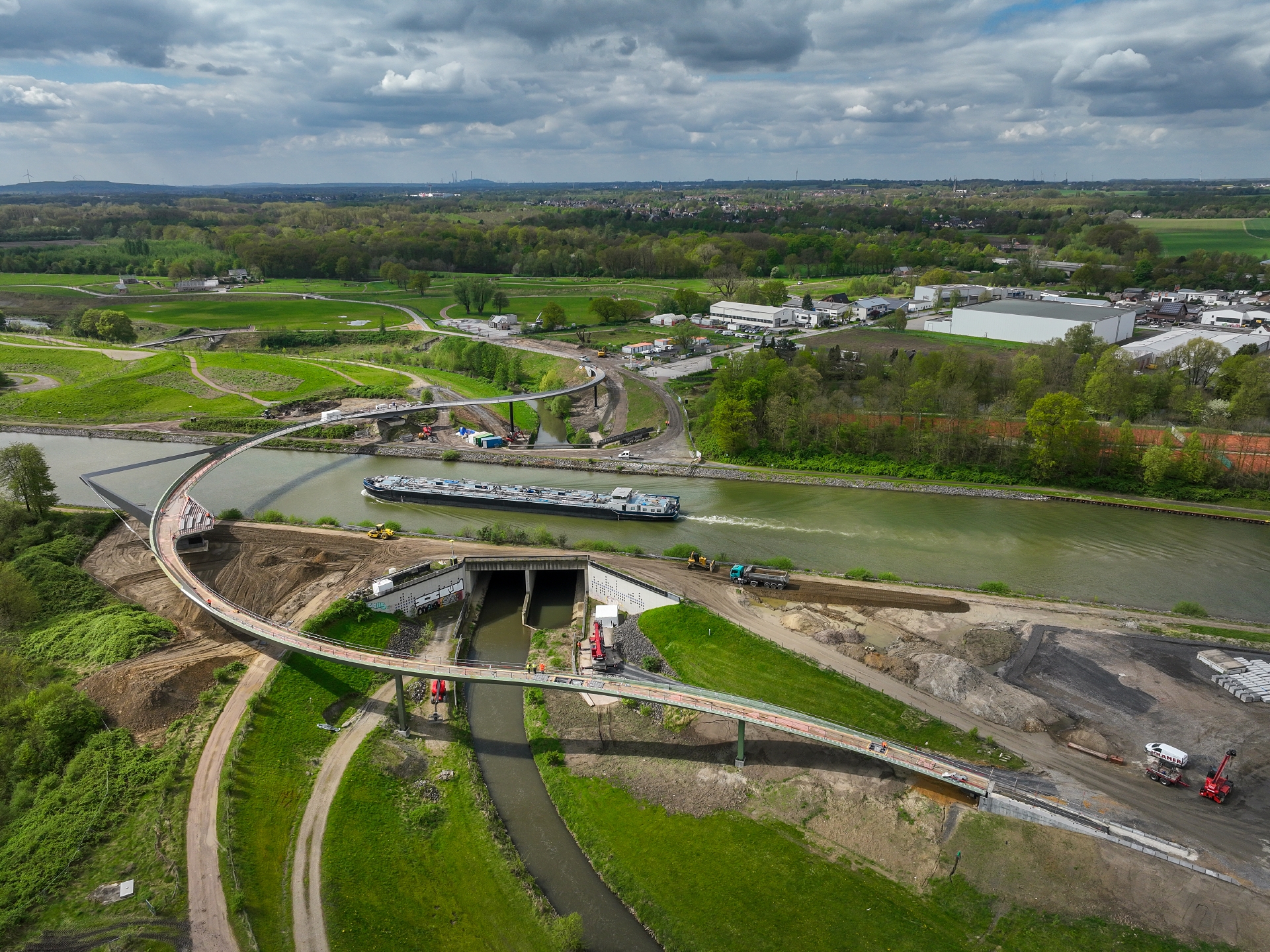 Das Brückenbauwerk "Sprung über die Emscher" in Castrop-Rauxel - hier zu sehen im Frühjahr 2024 - wird am 30. September eingeweiht.