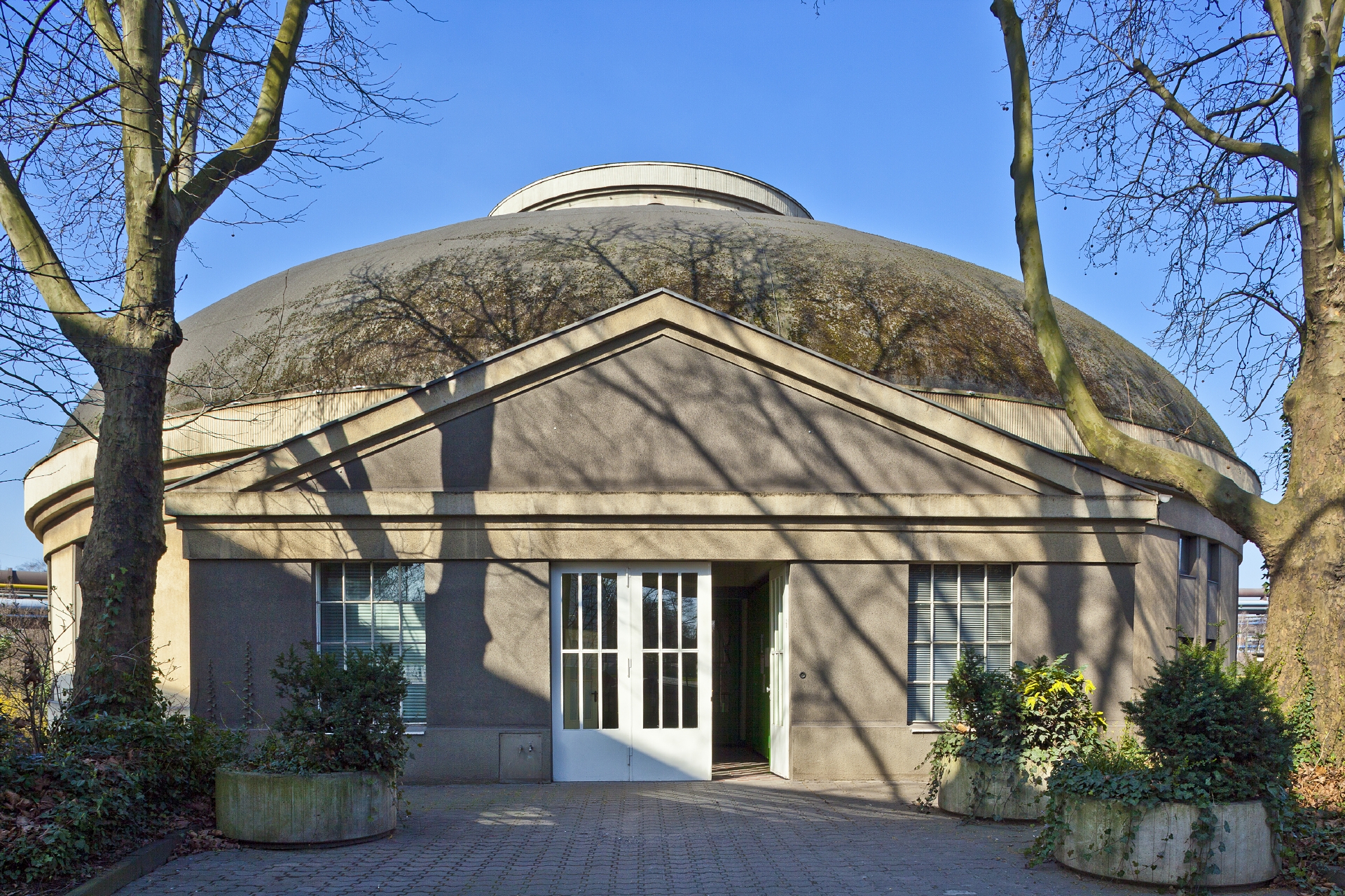 Die Eingangsoptik des Pumpwerks Alte Emscher in Duisburg ist an das römische Pantheon angelehnt. Eingeweiht wurde die Betriebsanlage vor genau 110 Jahren im Jahr 1914 - es ist einer der größeren Meilensteine in der 125-jährigen Geschichte der Emschergenossenschaft.
