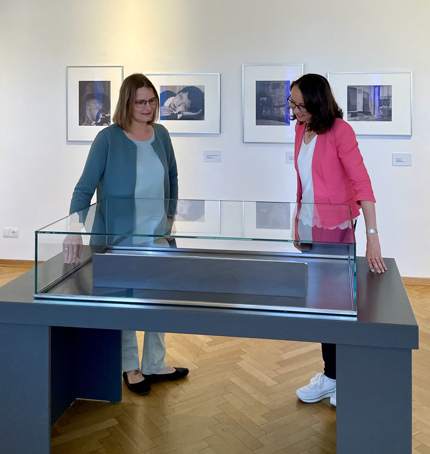 Dr. Silvia Bruder vom Museumsamt des Landschaftsverbandes Westfalen-Lippe (l.) und Museumsleiterin Dr. Sandra Hertel bei der Vorab-Präsentation der LWL-Wanderausstellung „Kosmos des Lebens. Die Fotografin Annelise Kretschmer“.