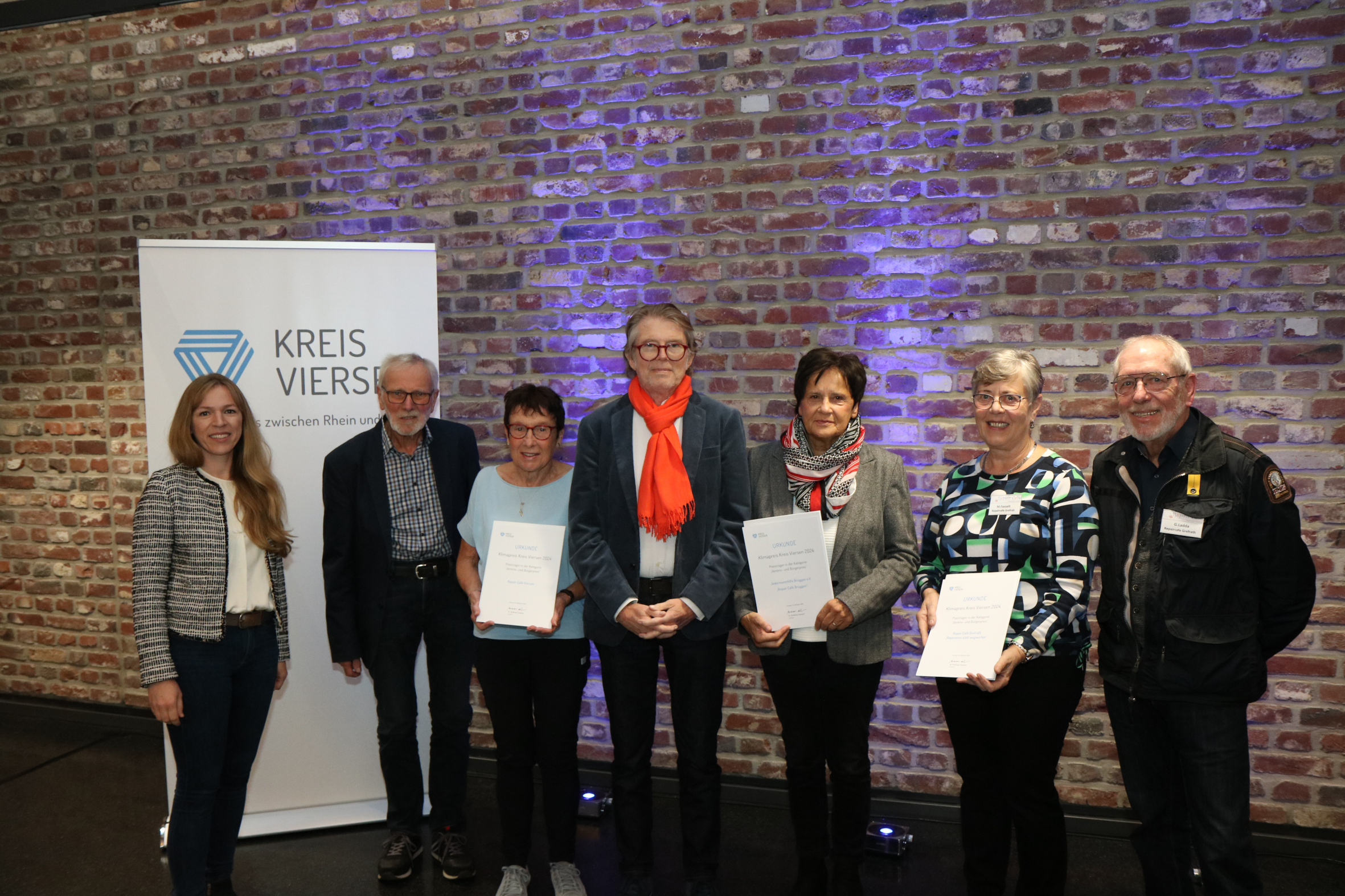 Vereins- und Bürgerpreis für JedermannHilfe Brüggen e.V., Repair Café Grefrath, Repair Café Viersen: Laudatorin Annalena Rönsberg (SPD), Willi Gillissen, Angela Gillissen, Marianna Fasselt, Günter Ladda, Marlene Schumachers und Roland van Zoggel.