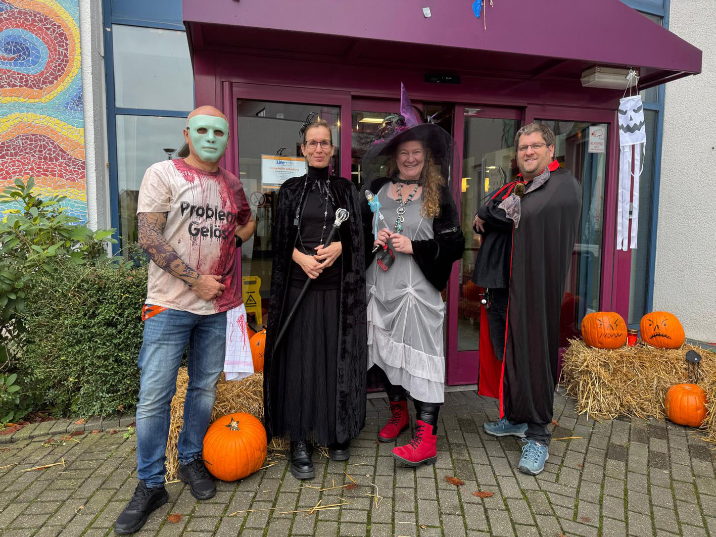 Das Leitungsteam mit Slobodan Masanovic, Nicole Riedel, SWI-Leiterin Tina Röse und Philipp Roggel (v.l.) hatten zu Halloween ins Seniorenzentrum Waldstadt Iserlohn eingeladen.