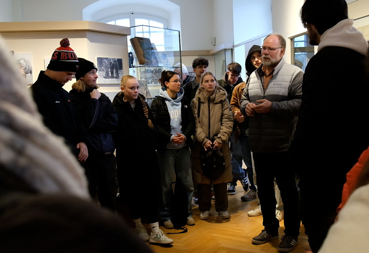 Die Bundesfreiwilligen 2024 im Gespräch mit Peter Häusser vom Stadtmuseum Iserlohn – einer Station ihres historischen Stadtrundganges.