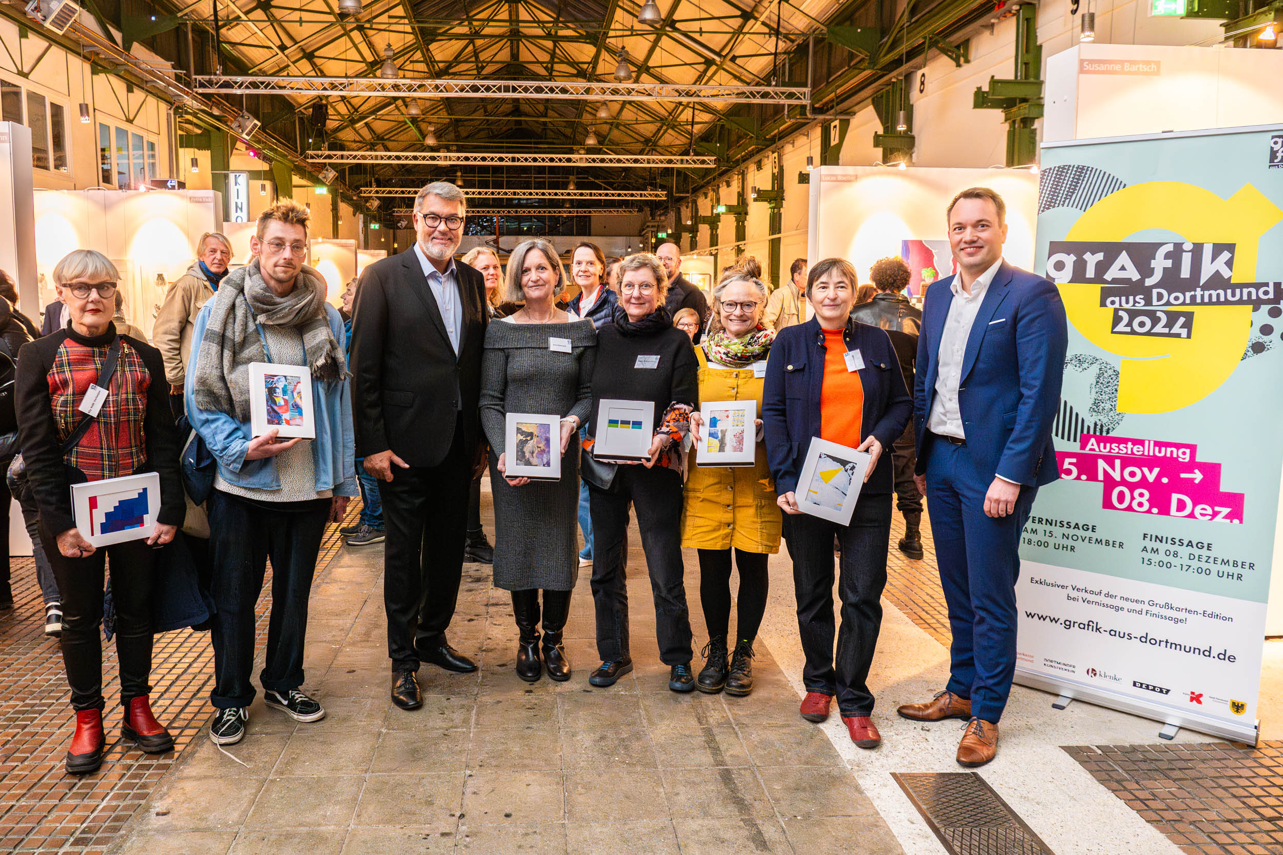 Von links: Elly Valk-Verheijen, Daniel Kireth, Oberbürgermeister Thomas Westphal, Eva Zimnoch, Gode Klingemann, Susanne Grytzka, Anett Frontzek und Sebastian Junker vom Vorstand der Sparkasse Dortmund.