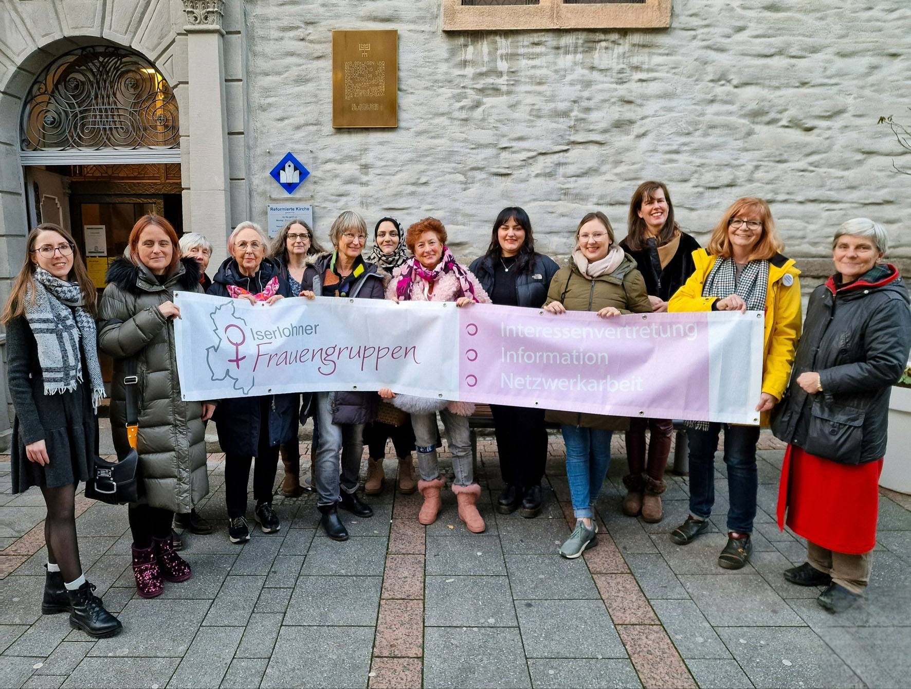 Vertreterinnen der Arbeitsgemeinschaft Iserlohner Frauengruppen laden herzlich ein zum Infostand und Beisammensein am Internationalen Frauentag.