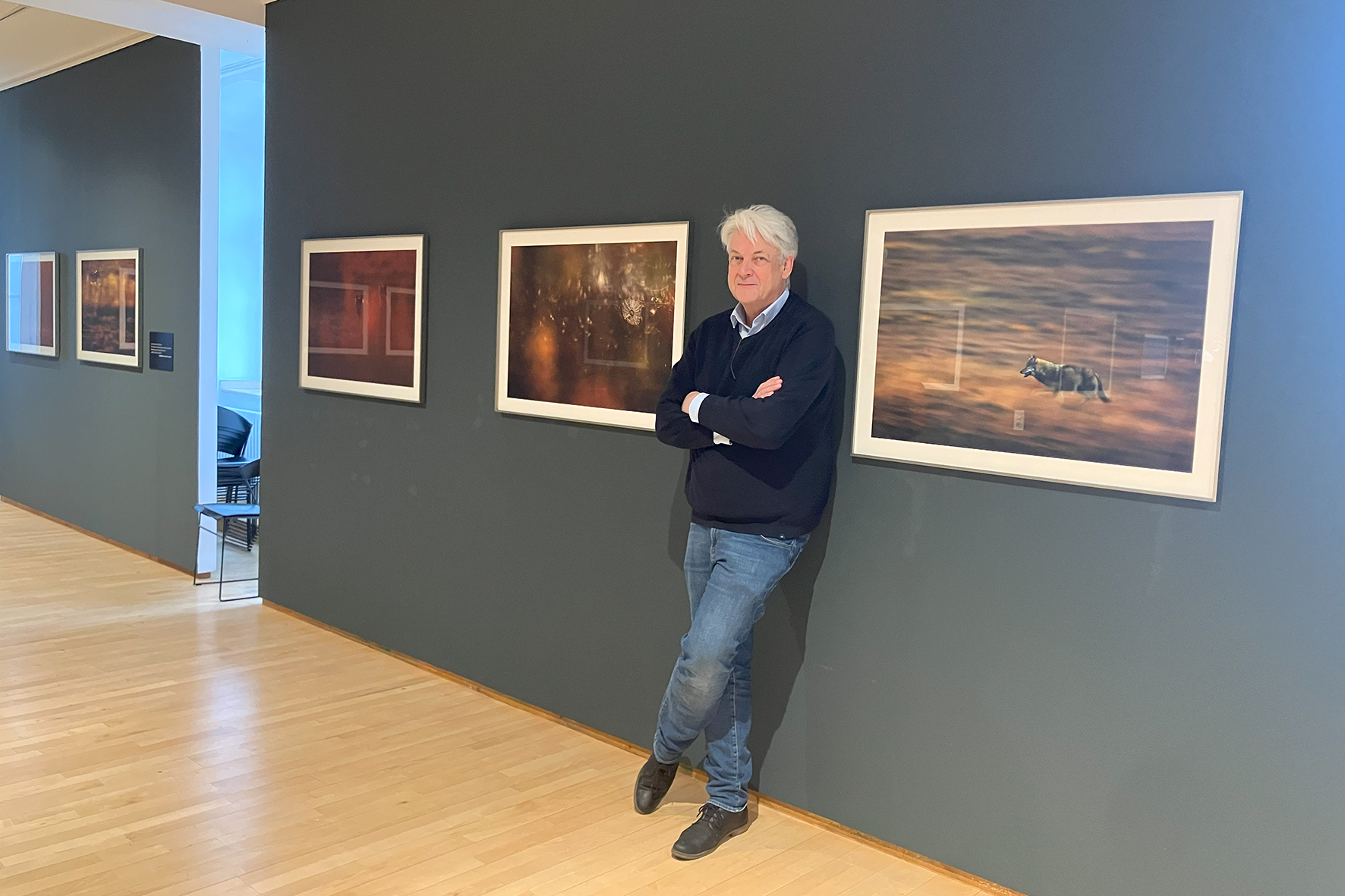 Rainer Danne, Leiter der Städtischen Galerie Iserlohn, präsentiert die Ausstellung „Klaus Tamm – Begegnungen. Im Land der Wölfe“.