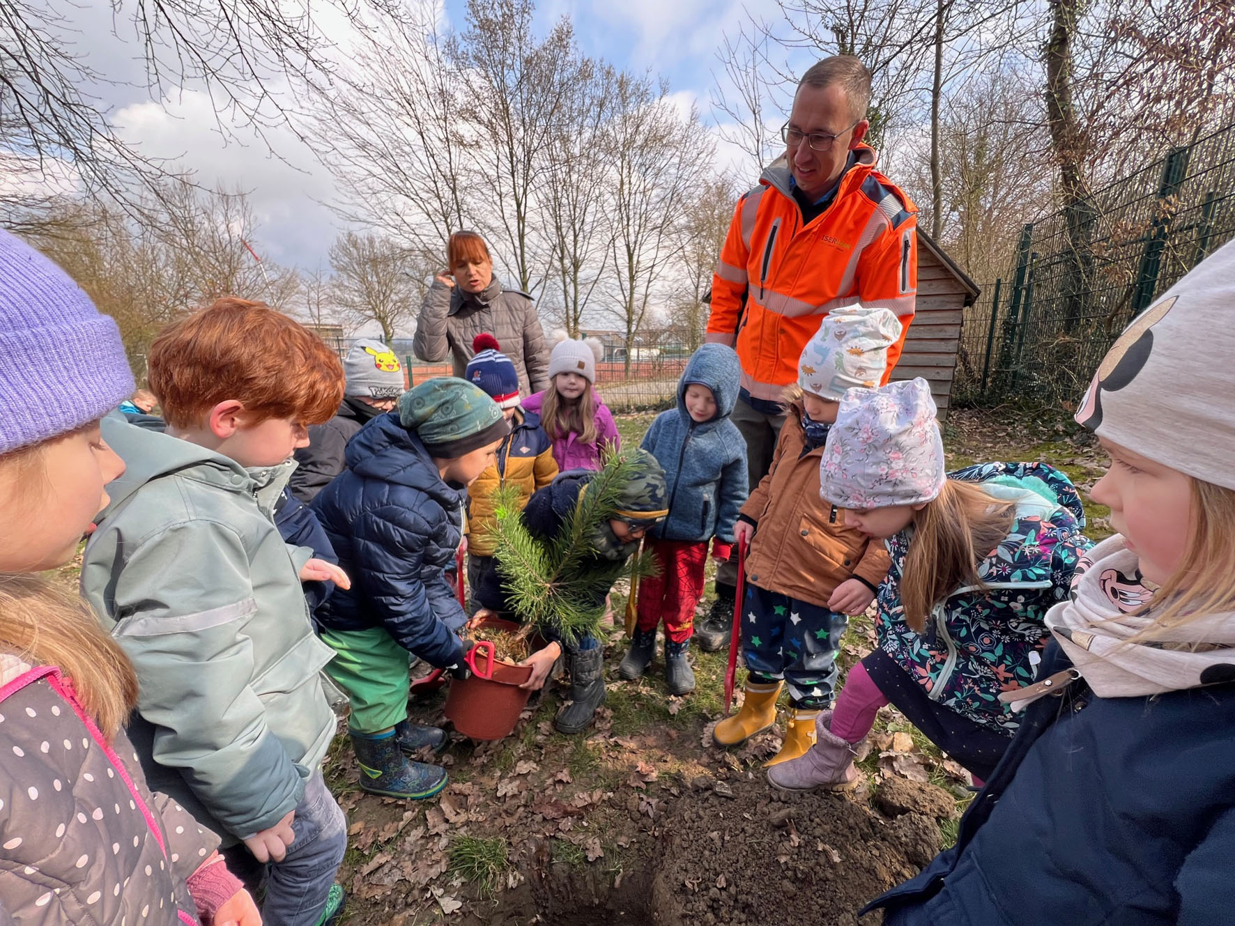 Die Kinder des Familienzentrums „Wilde 13“ in Hennen halfen bei der Pflanzung ihrer neuen Kiefer fleißig mit.