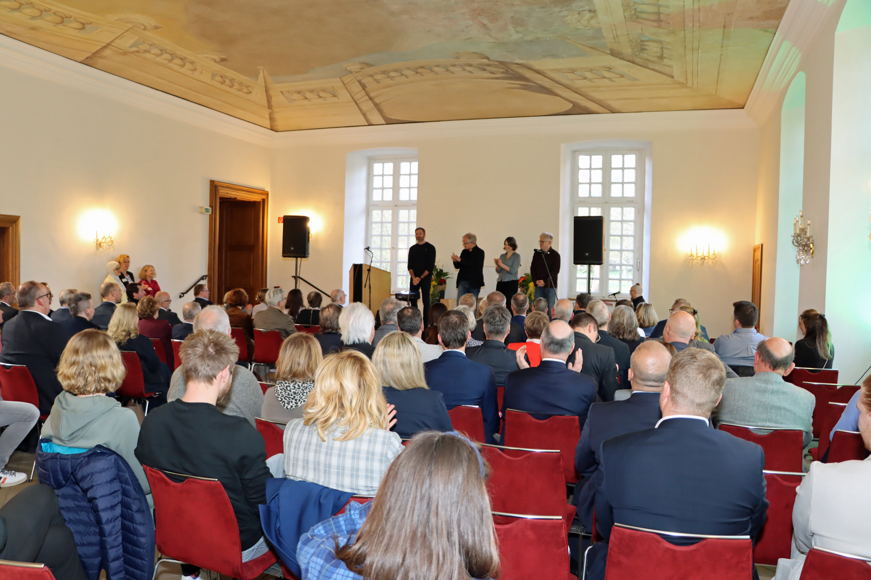 Das Improtheater „RatzFatz“ aus Münster führte spielerisch in das Tagungsthema "Resilienz und psychische Gesundheit am Arbeitsplatz" ein, spielte mit Erfahrungen und Haltungen der Teilnehmenden und verarbeitete diese rund um einen Vortrag zu einem improvisierten Bühnengeschehen.
