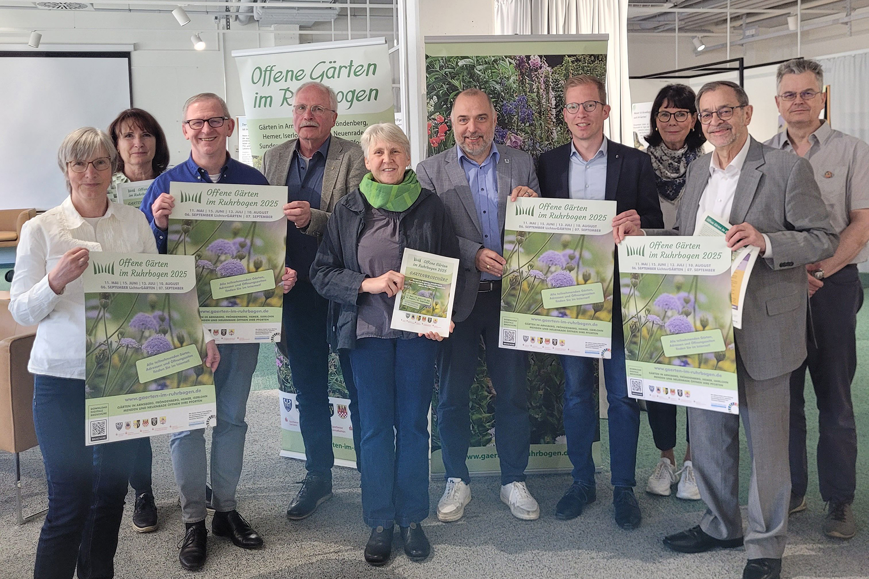 v.l.: Margarete Kind (Stadt Neuenrade), Martina Sträter (Stadt Fröndenberg), Dr. Roland Schröder (Bürgermeister Menden), Antonius Wiesemann (Bürgermeister Neuenrade), Patricia White (Stadt Iserlohn), Ralf Paul Bittner (Bürgermeister Arnsberg), Christian Schweitzer (Bürgermeister Hemer), Eva-Maria Rittinghaus (Sauerlandpark Hemer), Michael Scheffler (stellv. Bürgermeister Iserlohn), Klaus Fröhlich (Stadt Arnsberg)