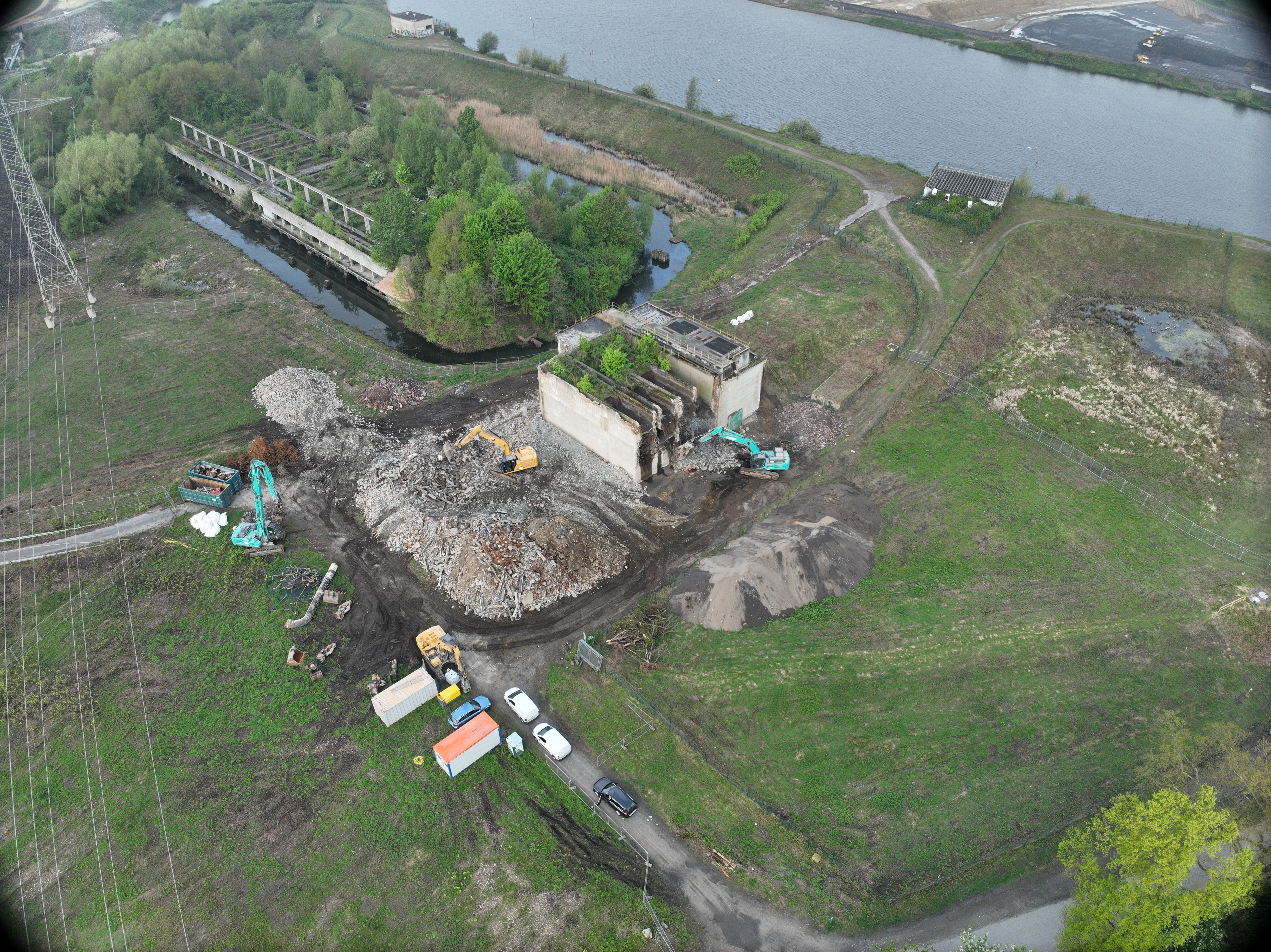 Um Platz für den Bau des neuen Lippe-Deichs zu machen, wird bis Ende Mai das Gebäude des ehemaligen Wasserwerkes östlich des Kunstwerks „Wasserstände“ vom Künstler Hermann Prigann nahe der Lippramsdorfer Straße zurück gebaut.