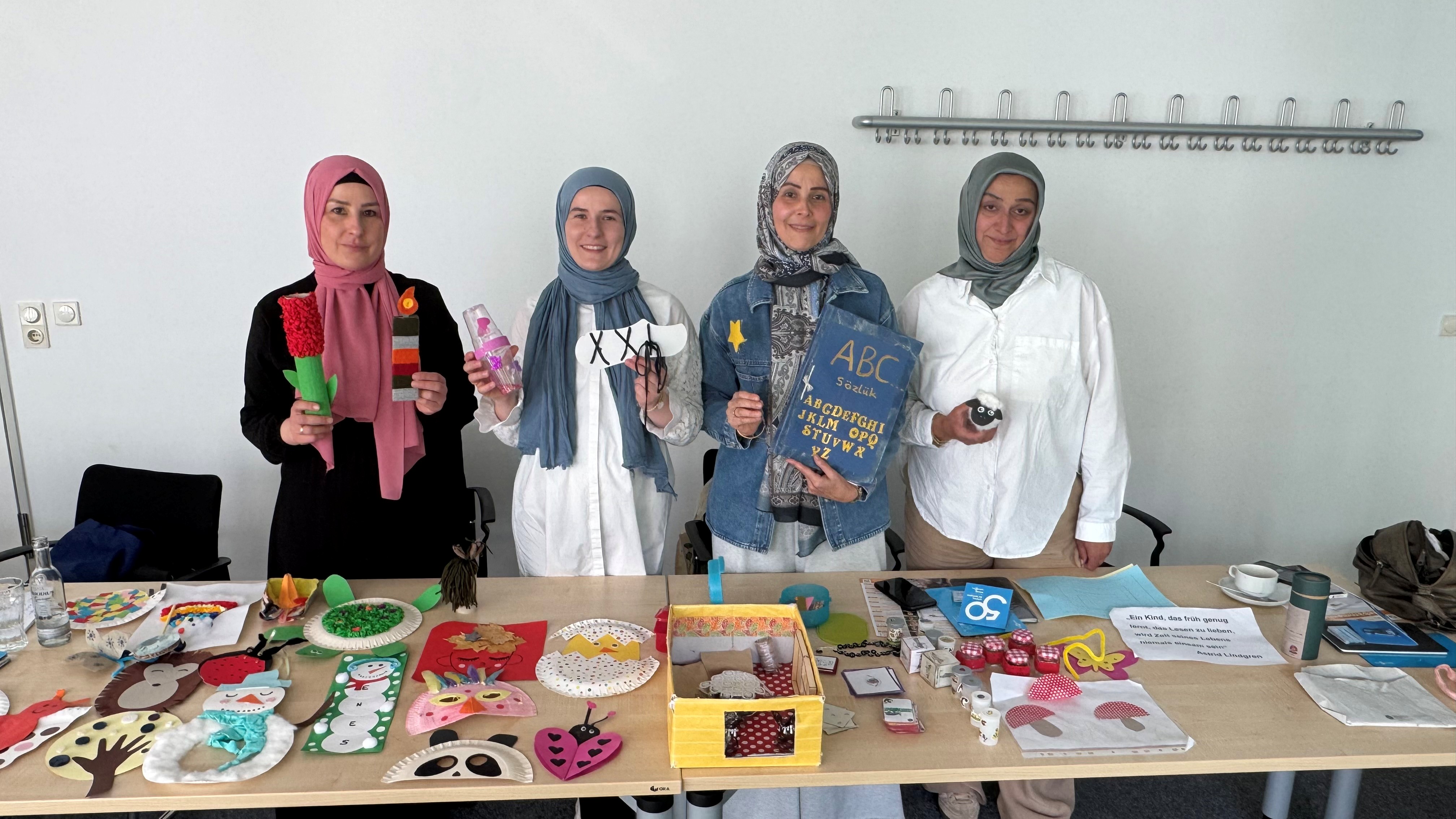 Bildzeile: Berna Kabakcı vom Kommunalen Integrationszentrum (2.v.l.) gemeinsam mit den Elternbegleiterinnen Selma Caliskan, Sema Günaydin, Semiya Agcabuga (v.l.).